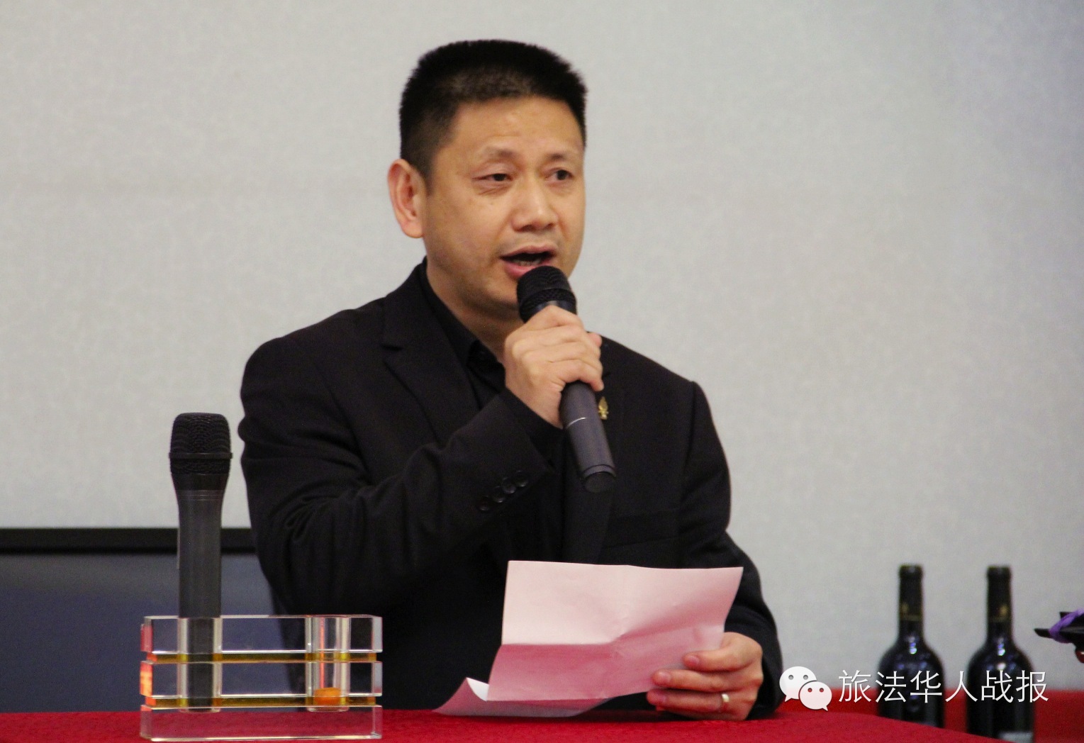 王原一秘在讲话中说,海外华侨华人,每个人都是一张祖国的名片,肩头都有沉甸甸的责任。法国外籍兵团退伍华人协会的会员兄弟都有很不平凡的军旅生涯,之后又在各自的事业领域取得很大的成功,大家以协会为平台,团结侨胞,发展教育,各方面都取得不俗的成绩。中法关系未来的十年要靠新一代,所以把教育做好是重中之重,希望下一代可以真正成为民间使节,为中法两国的关系作出新贡献。王原代表使馆领事部对在座嘉宾致以新春祝福,寄语新一年取得新进步。