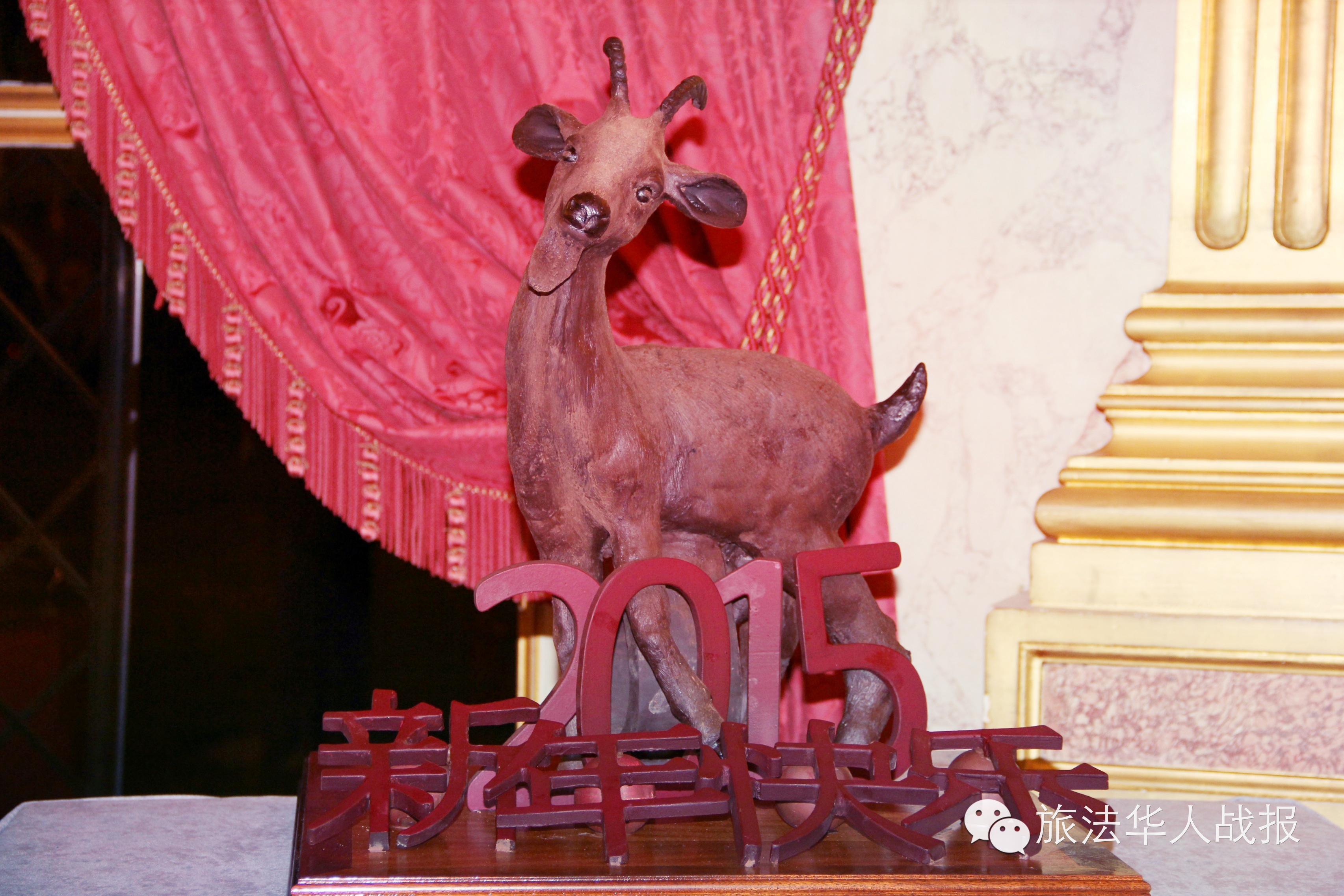 (新欧洲战报记者 鲁佳) 2015年2月10日晚,在塞纳河畔的国民议会议长官邸拉塞宫(Hôtel de Lassay),法国国民议会和中国驻法使馆共同举办新春招待会,这是首次法国国会参议院和众议院一同参与举办该活动,也是有近300年历史的拉塞宫三度为中国春节敞开大门。 中国农历羊年将至,国民议会特别订制了吉羊造型的巧克力雕塑作为新年礼物赠予中方,庆祝中国羊年。