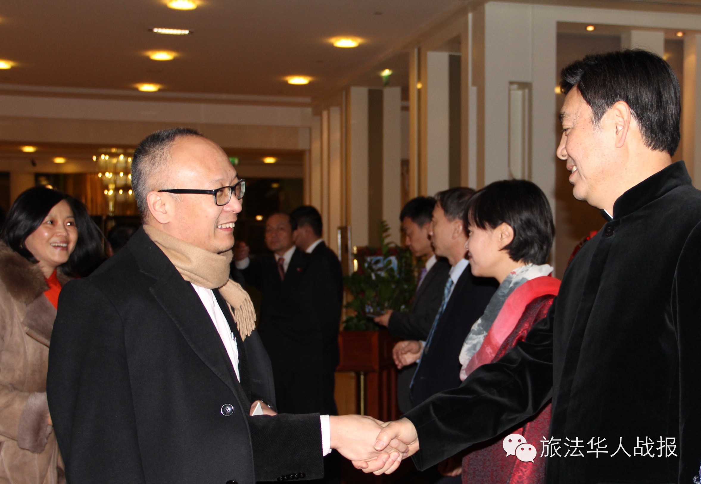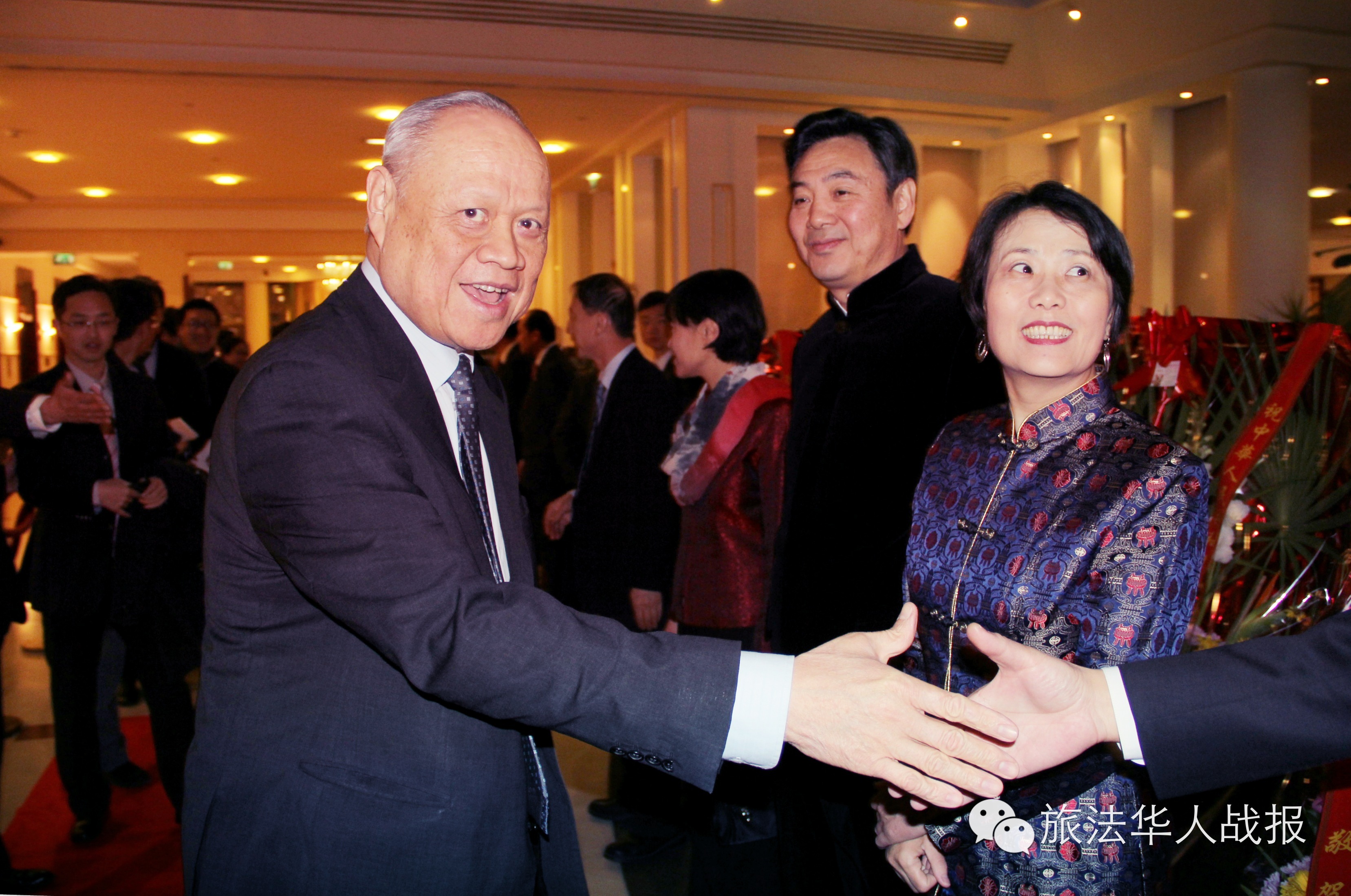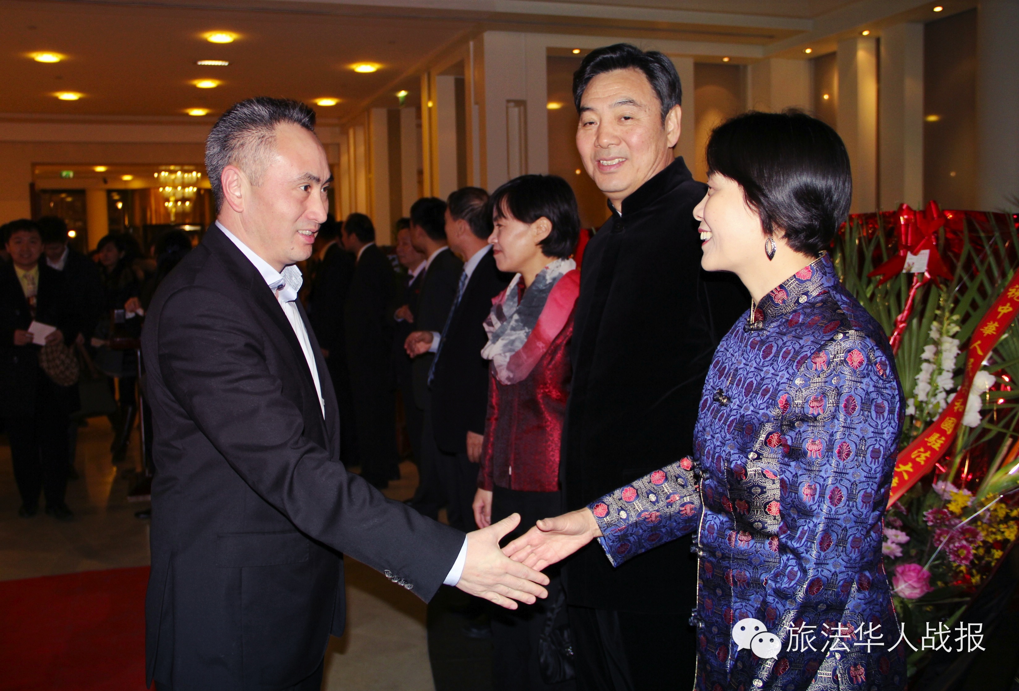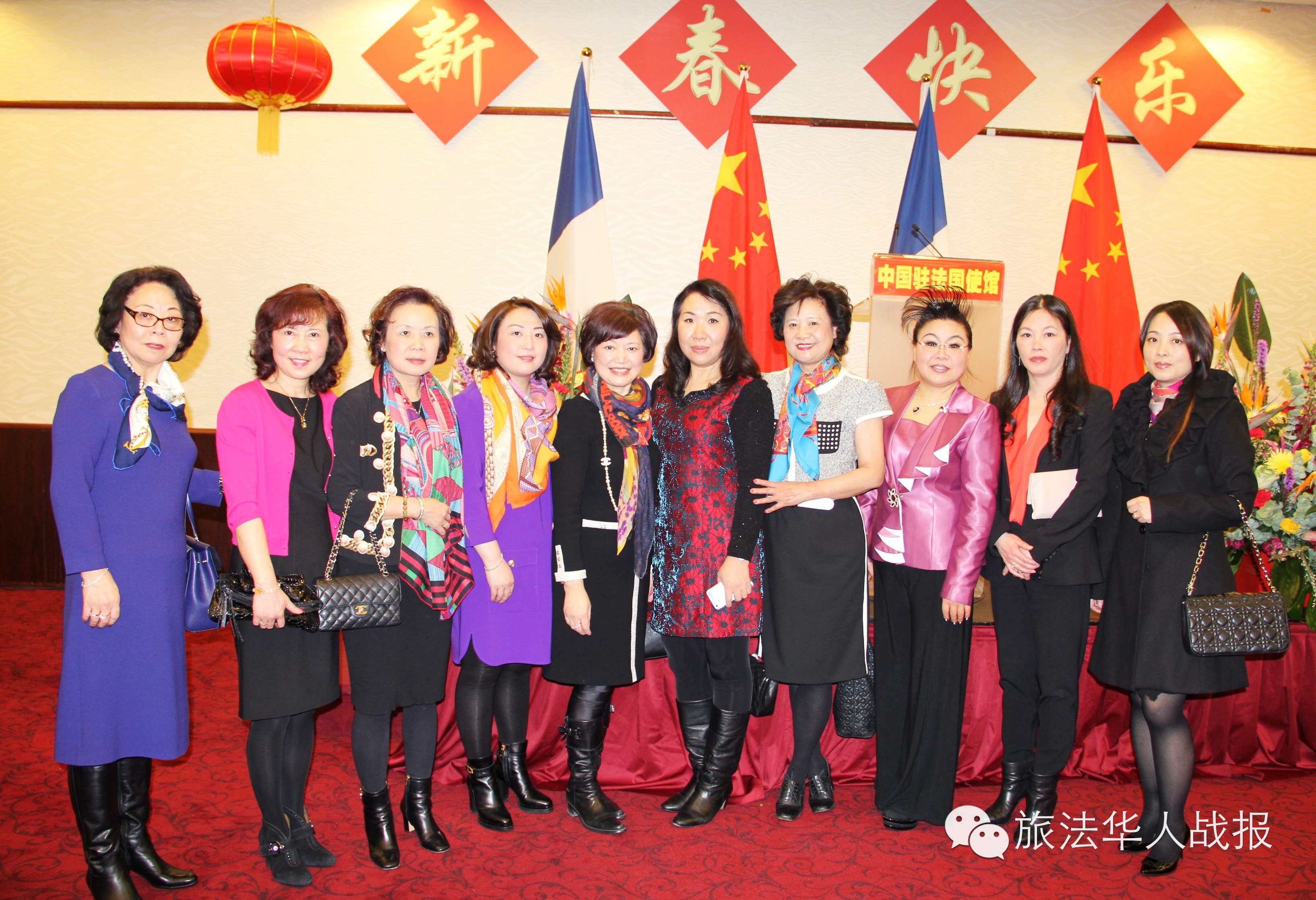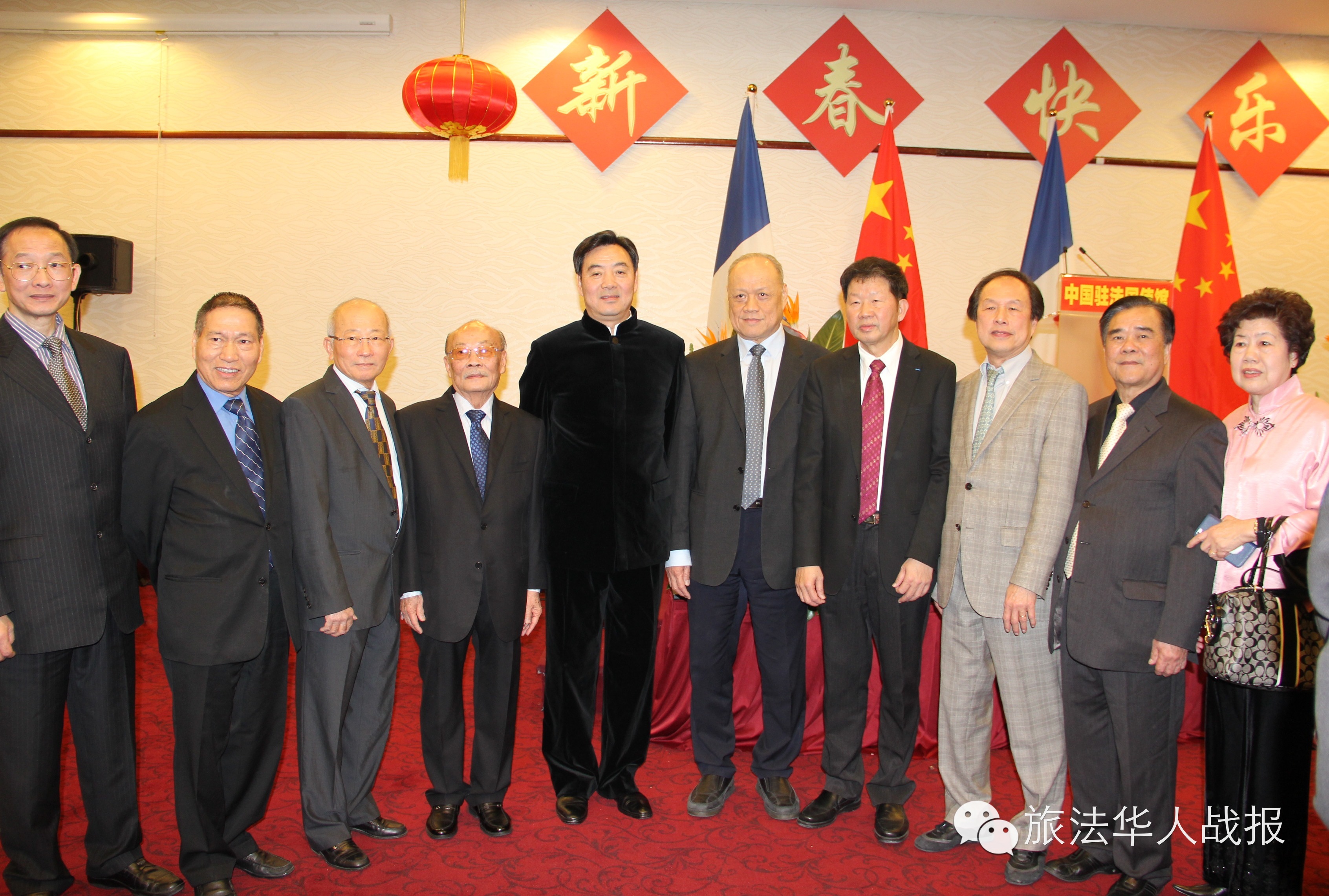 (新欧洲战报记者 鲁佳)骏马春常在,吉羊福又添。2015年2月11日晚,中国驻法使馆在巴黎华侨饭店举办乙未羊年春节招待会。厅堂华灯璀璨,春意盎然,大红灯笼平添喜气。中国驻法大使翟隽、王新霞参赞夫妇,邓励公使夫妇,领事部主任李平公参,一等秘书王原、李京生在大厅入口与来宾们一一握手,互致新春问候。 招待会由李平公参主持。 翟隽大使发表了热情洋溢的讲话。他表示,今天是中国传统习俗的“小年”,借此机会,携夫人和使馆同事欢迎大家回家团聚,并向在法同胞拜个早年。 回顾即将过去的马年,翟隽表示,在这不平凡的一年,祖国妥善应对国内外的复杂局面,适应经济新常态,实现经济社会平稳发展;国家锐意进取,取消城乡二元户籍制度,启动民营银行试点,实现沪港股市互联互通,全面深化改革取得重要进展;大力推进依法治国,严惩腐败分子,显示了反腐惩恶的坚定决心;加强对外交往合作,成功主办北京亚太经合组织领导人非正式会议,提出亚太自贸区倡议,国际地位不断提升。 翟隽说,为庆祝中法建交50周年,去年举办了800多场庆祝活动,中法友好合作在两国深入民心。去年3月,习近平主席访法,今年1月底,瓦尔斯总理访华,两国一系列重要互访都取得成功。中法各领域务实合作一路向前,以东风入股标致雪铁龙邓项目为代表,双方投资合作实现突破。法国公共投资机构发行30亿元离岸人民币债券,推动人民币国际化迈出重要一步;两国启动人文交流机制,将进一步加深相互了解,巩固中法友谊。 谈到在法华侨华人,翟隽表示,旅法侨胞是中法关系的纽带,大家广泛参与中法交往,促进两国民间友好,兴办中文教育,弘扬中华文化,扎根法国,为当地经济社会做出回馈,心系祖国,为家乡发展建设贡献力量。在法中资企业是中法关系发展的动力之一,努力开拓海外市场,学习法国先进技术,服务国内产业升级,积极探索两国经贸合作的新领域和新模式,树立了中国企业的良好口碑,也预示着中法互利共赢的广阔前景。在法留学生是中法关系发展的希望,大家充满时代气息,向法国民众展示了中国发展进步的新风貌,也促进了两国人民的沟通与理解。学生们肩负着中华民族伟大复兴的历史使命,日益发展的祖国是大家的坚强后盾,也是施展才华的大舞台。