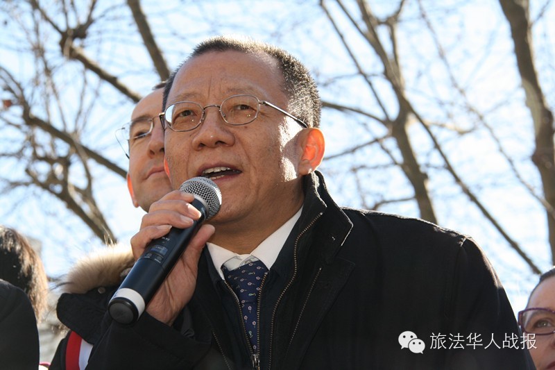 李平公参在致辞中代表使馆向美丽城的华侨华人拜年,祝愿华商事业兴隆,新的一年事事顺利,早日摆脱欧洲经济危机的阴影,取得事业新发展。