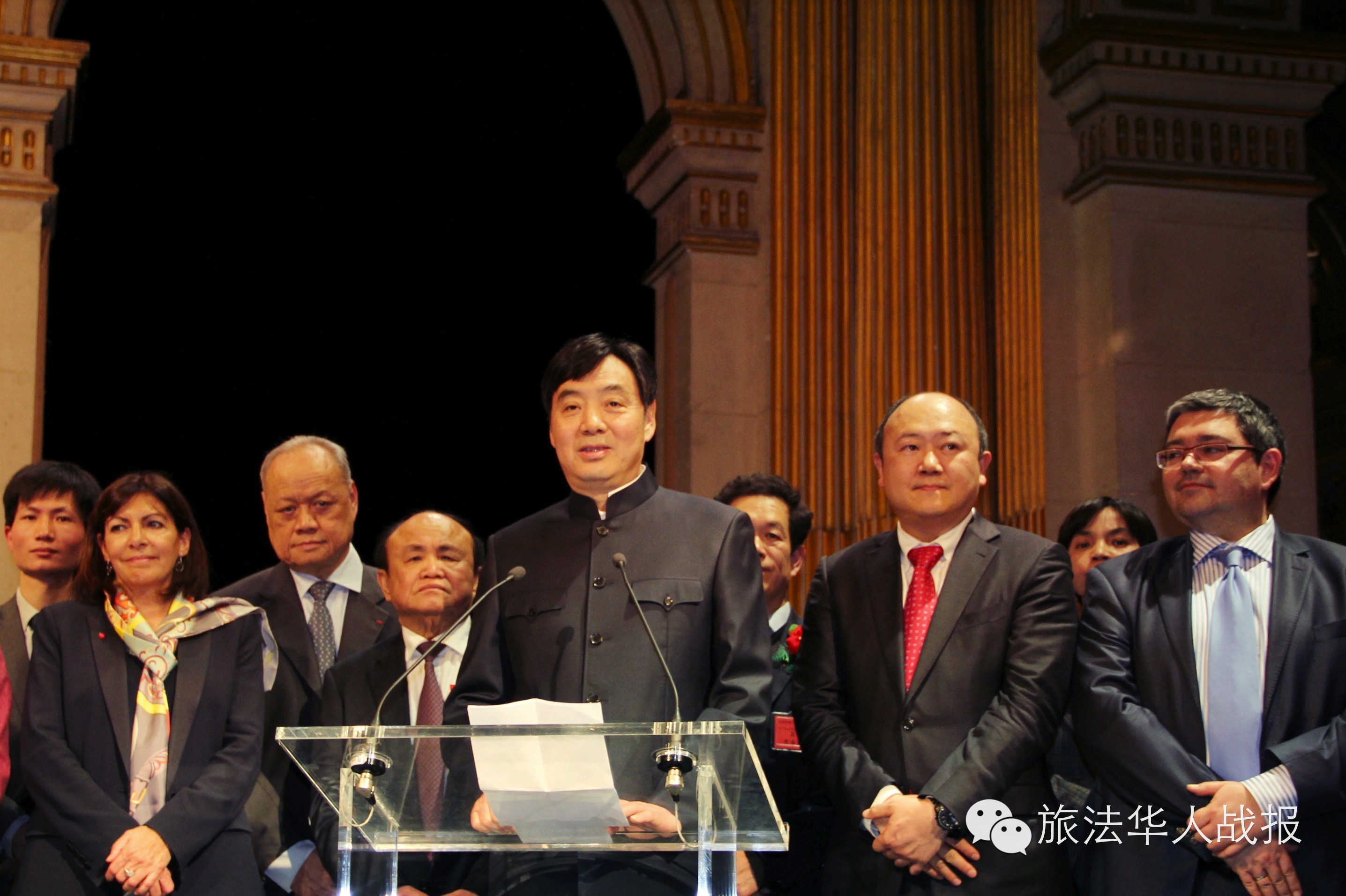 (新欧洲战报记者 鲁佳)2月24日晚,巴黎市政府携手法国华裔互助会和华裔融入法国促进会在市政厅举办羊年春节招待会,巴黎市长伊达尔戈(Anne Hidalgo),主管国际关系的副市长克鲁格曼(Patrick Klugman)和主管社会生活、青年和就业事务的副市长韦洪(Pauline Véron),中国驻法大使翟隽及夫人王新霞参赞,巴黎市议员陈文雄(Buon Tan),十二区区长埃勒巴兹(Baratti Elbaz),十三区区长顾梅(Jérôme Goumet),法国华裔互助会会长郑辉,法国陈氏兄弟集团董事总经理陈克光,法国潮州会馆会长吴武华等出席了当晚的招待会。