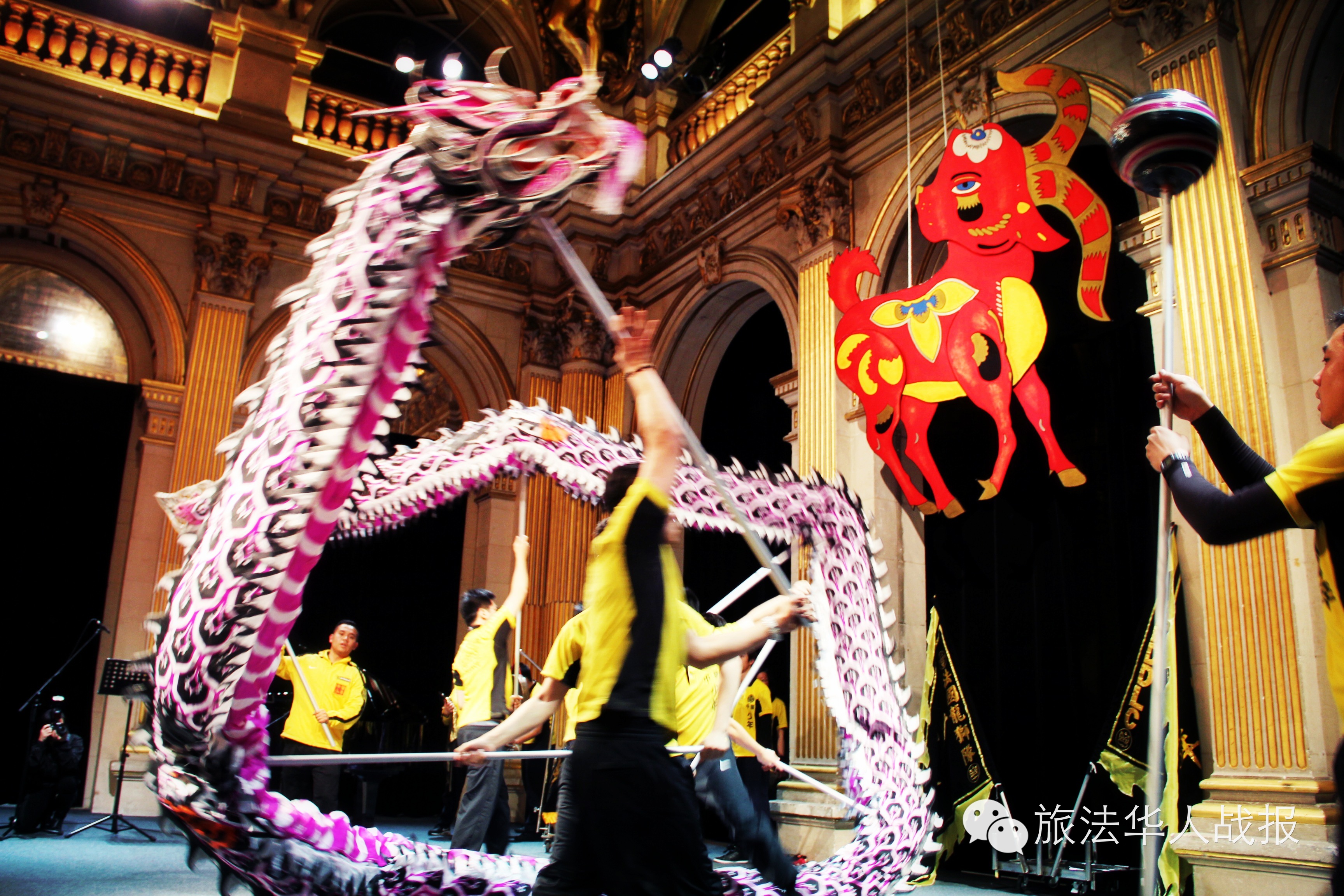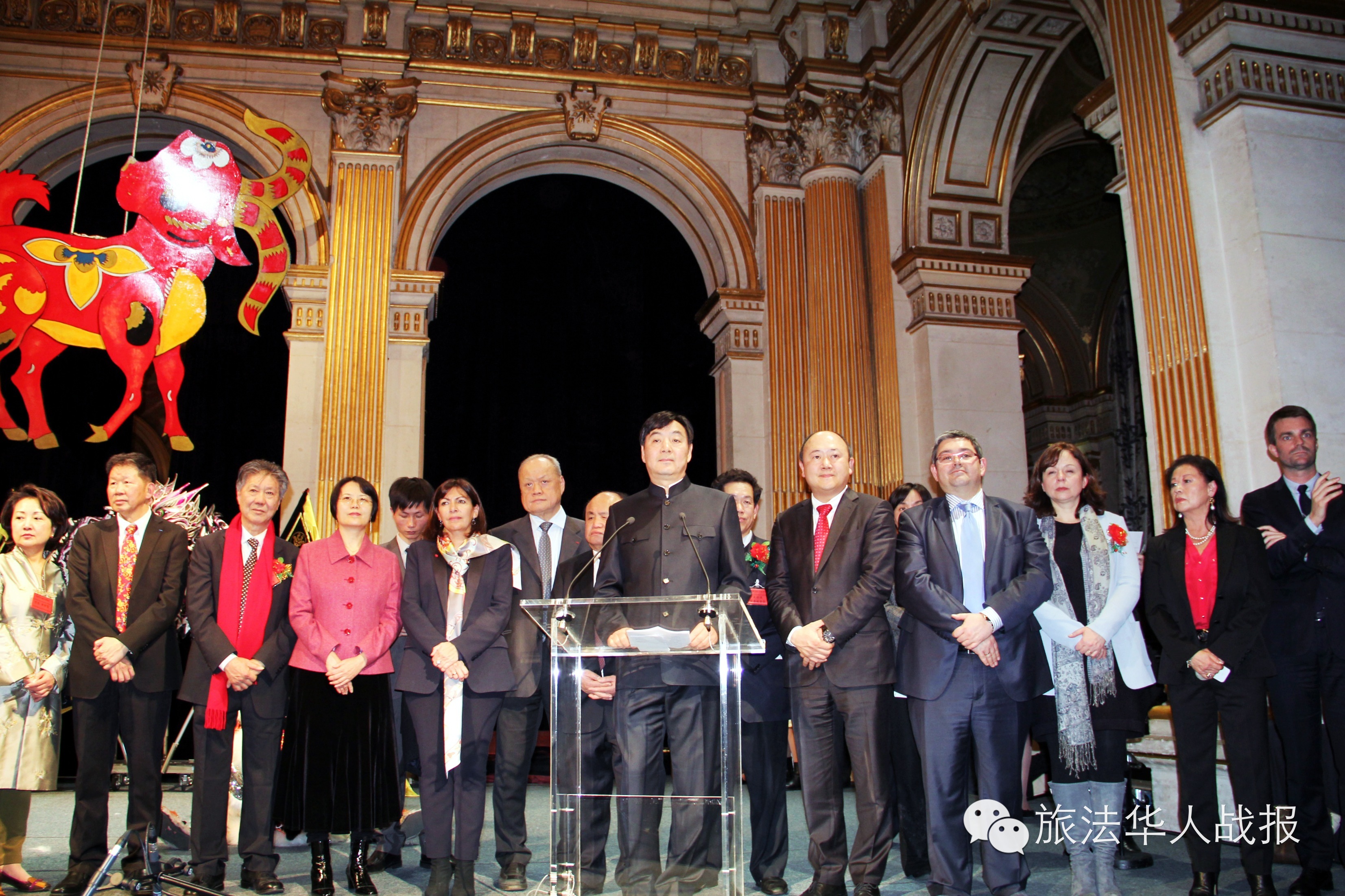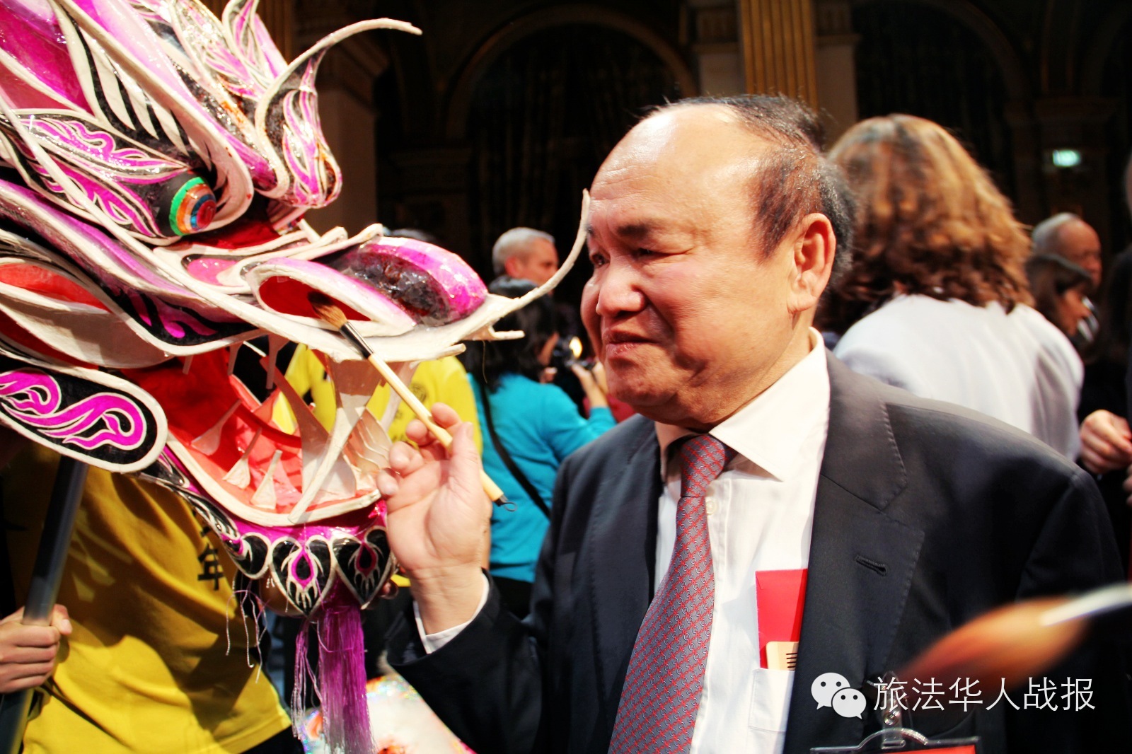 翟隽大使在致辞中首先向巴黎市政府致谢,感谢提供这样一个平台让他与侨胞再度欢聚,借此机会也向旅法侨胞和法国朋友致以新春的问候。翟隽回顾说,去年一月履职正值春节前夕,对巴黎过年的热闹程度留下了深刻印象。最近两周出席各种各样的庆春节活动,再次深刻体会到巴黎社会的开放、多元与和谐。翟隽大使盛赞旅法侨胞,通过辛勤努力实现个人发展,融入当地社会,为中法友谊和东西方文化交流搭建了桥梁。 翟隽大使表示,刚刚过去的马年是中法关系不平凡的一年,习近平主席成功对法国进行国事访问,两国举办了800多场活动庆祝建交50周年,反响热烈。中法务实合作成果丰硕,双向投资方兴未艾,中国对法投资增长尤为迅速,去年来法观光的中国游客达到200万。羊年伊始,中法关系站在新的起点。地方合作正在成为中法关系中最具活力的部分,中方愿与法国朋友一道共同探讨深化地方合作的思路与计划,将双方的政治意愿转化为具体合作成果,相信巴黎市和生活在巴黎的华人侨胞将为此作出重要贡献。 翟隽大使在讲话最后向所有侨胞和法国友人拜年,称“羊”在中国文化里寓意着吉祥,祝愿大家羊年如意,身体健康,家庭幸福,事业发达。 翟隽大使与伊达尔戈市长、郑辉会长、陈克光总经理、顾梅区长、陈文雄议员等共同为醒狮点睛,迎祥纳福。之后,2000余名中法观众共同观看了由上海小荧星艺术团、上海砖桥学校艺术团、奥地利莫扎特音乐学院献上的精彩表演。
