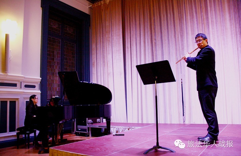 (战报实习记者 吴忱)2月24日,中国农历大年初六,巴黎威薇音乐文化中心受巴黎三区政府邀请,在区府举办了2015新春音乐会。 本场音乐会由巴黎三区政府主办,巴黎威薇音乐文化中心著名旅法长笛演奏家王伟、古筝家饶莺、歌唱家李明明、钢琴家侯娟等担纲演出。 在这场中国特色的民族音乐会里,法国观众不仅大饱耳福,也大饱眼福——音乐会给中法两国观众带来了包括古筝、长笛、萧、埙在内的中国传统乐器演奏,还结合了西洋乐器钢琴。在各种乐器琴瑟和谐的配合中,观众们欣赏到了中国传统的音乐表达方式。享有法国艺术与文化骑士勋章的著名钢琴家和教育家周勤龄女士也到场观看了此次演出。 演出结束后,旅法长笛演奏家、巴黎威薇音乐文化学校校长王伟先生接受了旅法华人战报的独家采访。他总结了本次演出的三大亮点: