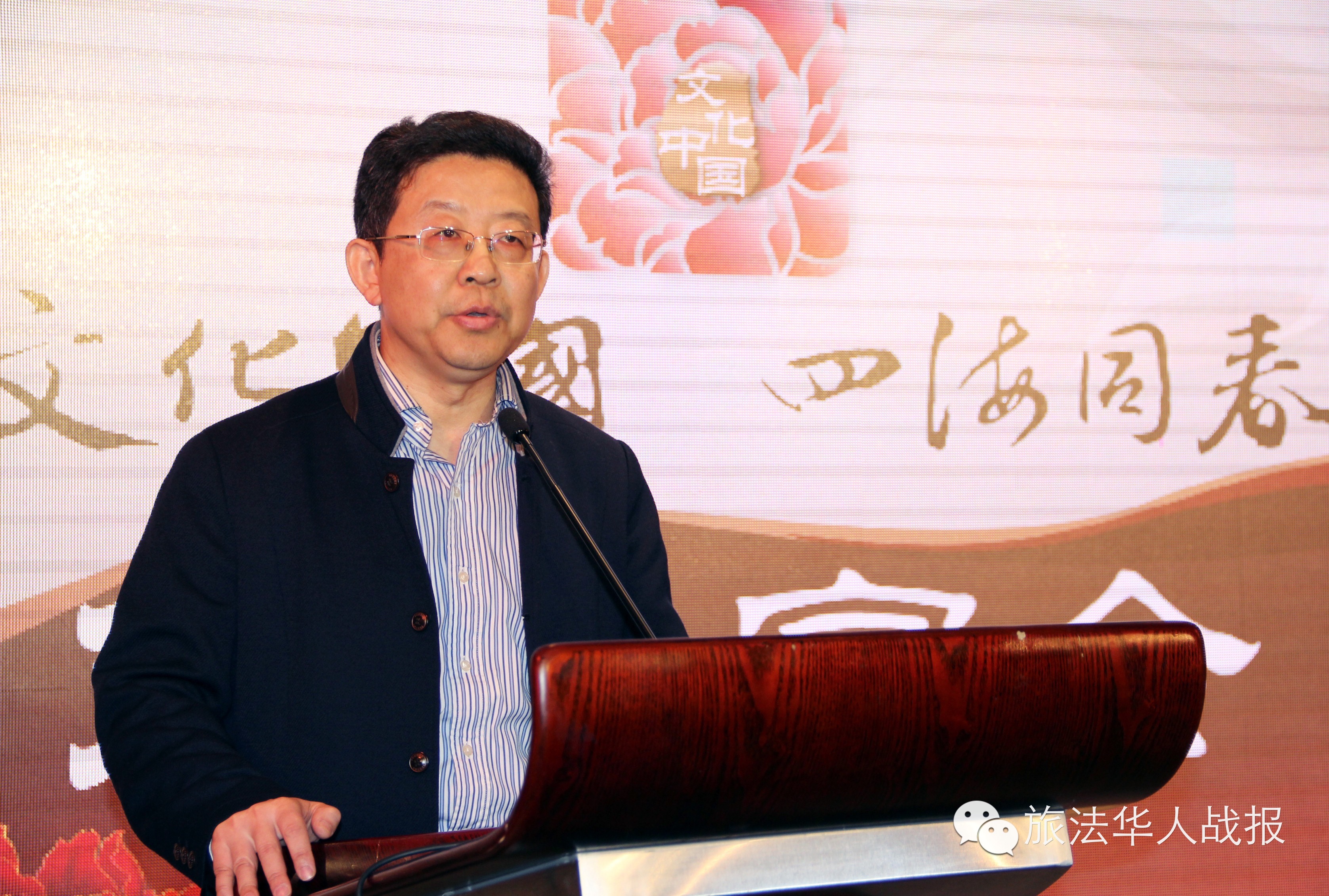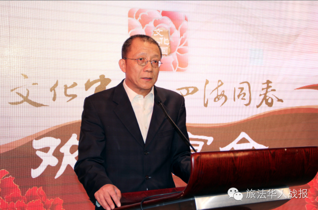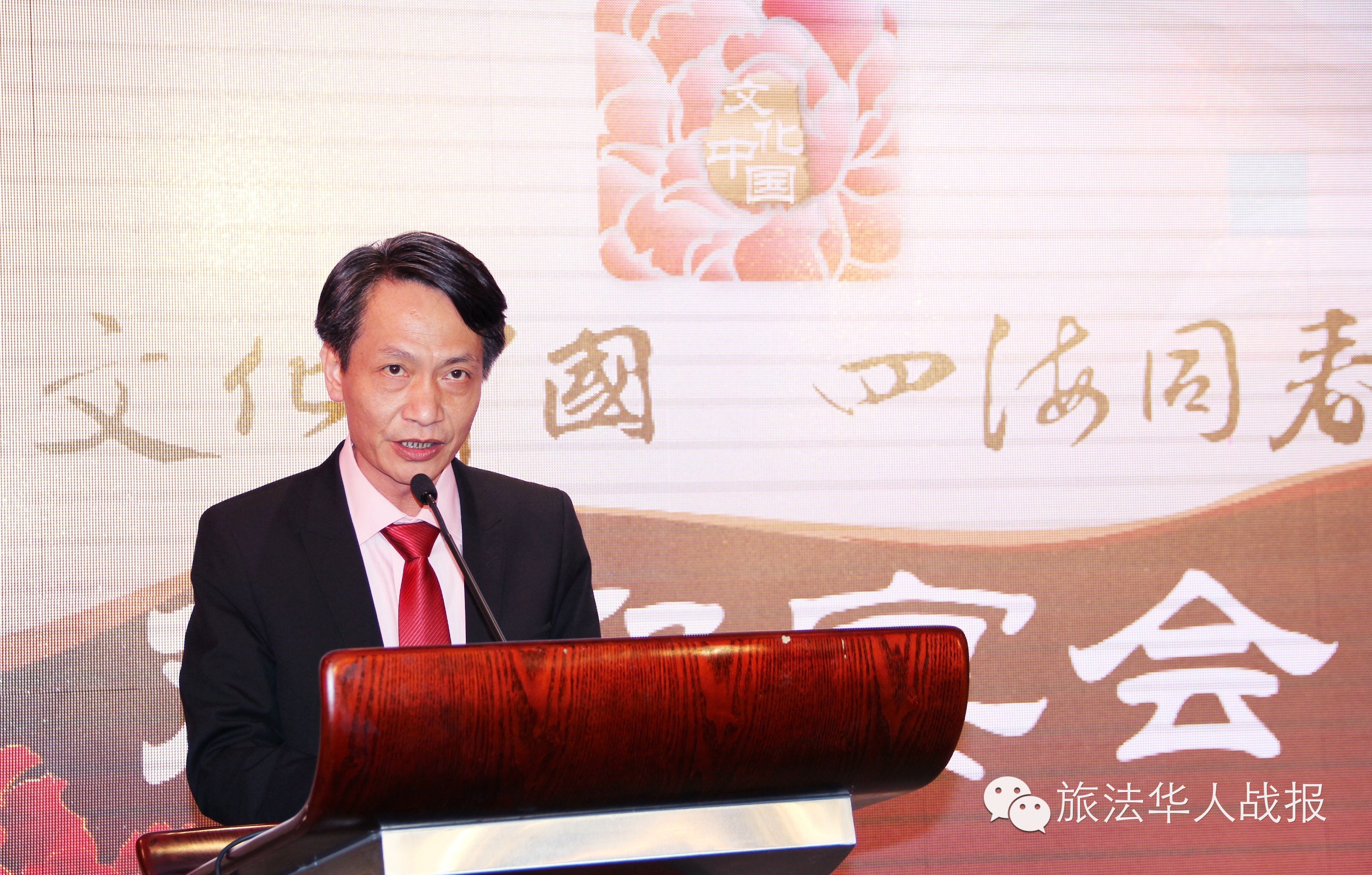 (新欧洲战报记者 鲁佳)由中国国务院侨务办公室和旅法侨界共同主办,法国华侨华人会和欧洲时报传媒集团承办的2015年“文化中国·四海同春”大型慰侨演出,将于2月27日在巴黎会议宫(Palais des Congrès de Paris)隆重举行。2月26日,旅法侨界在华天中国城大酒店巴黎金阁餐厅为抵达巴黎的艺术团一行接风。 “文化中国·四海同春”艺术团团长、国侨办宣传司许玉明司长及侨胞熟悉和喜爱的董文华、阎维文、蔡国庆等一级演员,当晚与侨界代表百余人欢聚塞纳河畔,共享一轮明月,同话家国情思。 当天的活动由法国潮州会馆会长吴武华主持。中国驻法使馆领事部主任李平公参、欧洲时报常务副社长钟诚应邀出席。