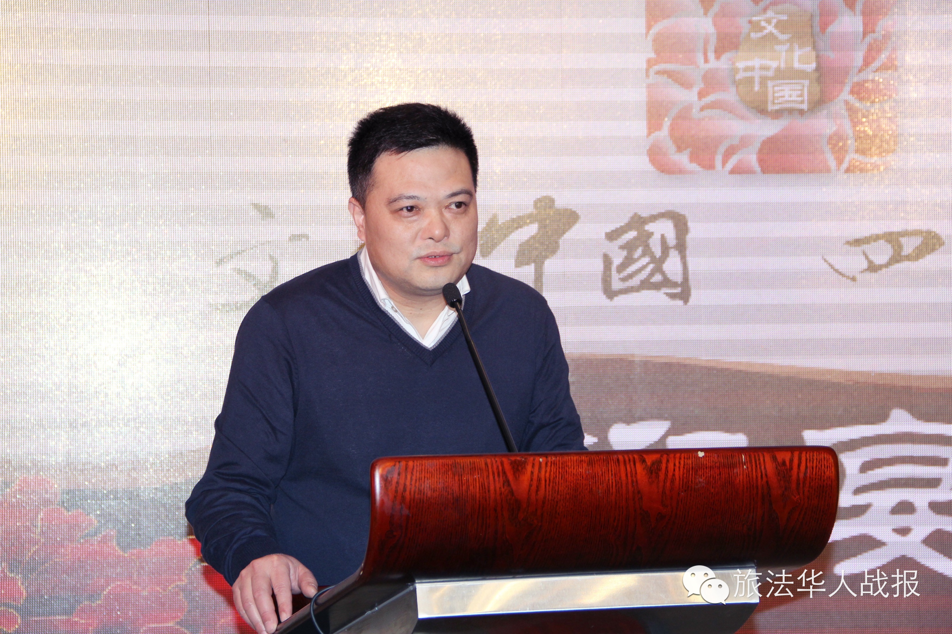 许玉明团长在讲话中向侨胞问候新年好。许玉明表示,国侨办的宗旨就是为侨服务,而“文化中国·四海同春”是着力打造的一个品牌活动。活动自2009年启动以来,共组派43个艺术团组到访96个国家和港澳地区的184个城市,正式演出283场,观众超过338万人次,海外反响热烈,且越来越受欢迎,有“全球华人的海外春晚”之誉。今年的演出阵容尤其豪华,包括大家熟悉和喜爱的董文华、阎维文、蔡国庆等国家一级演员和2014“中国好声音”冠军张碧晨等新生代歌手,并由著名导演丁伟执导,希望大家27号去现场观看演出,共度一个美好的节日夜晚。
