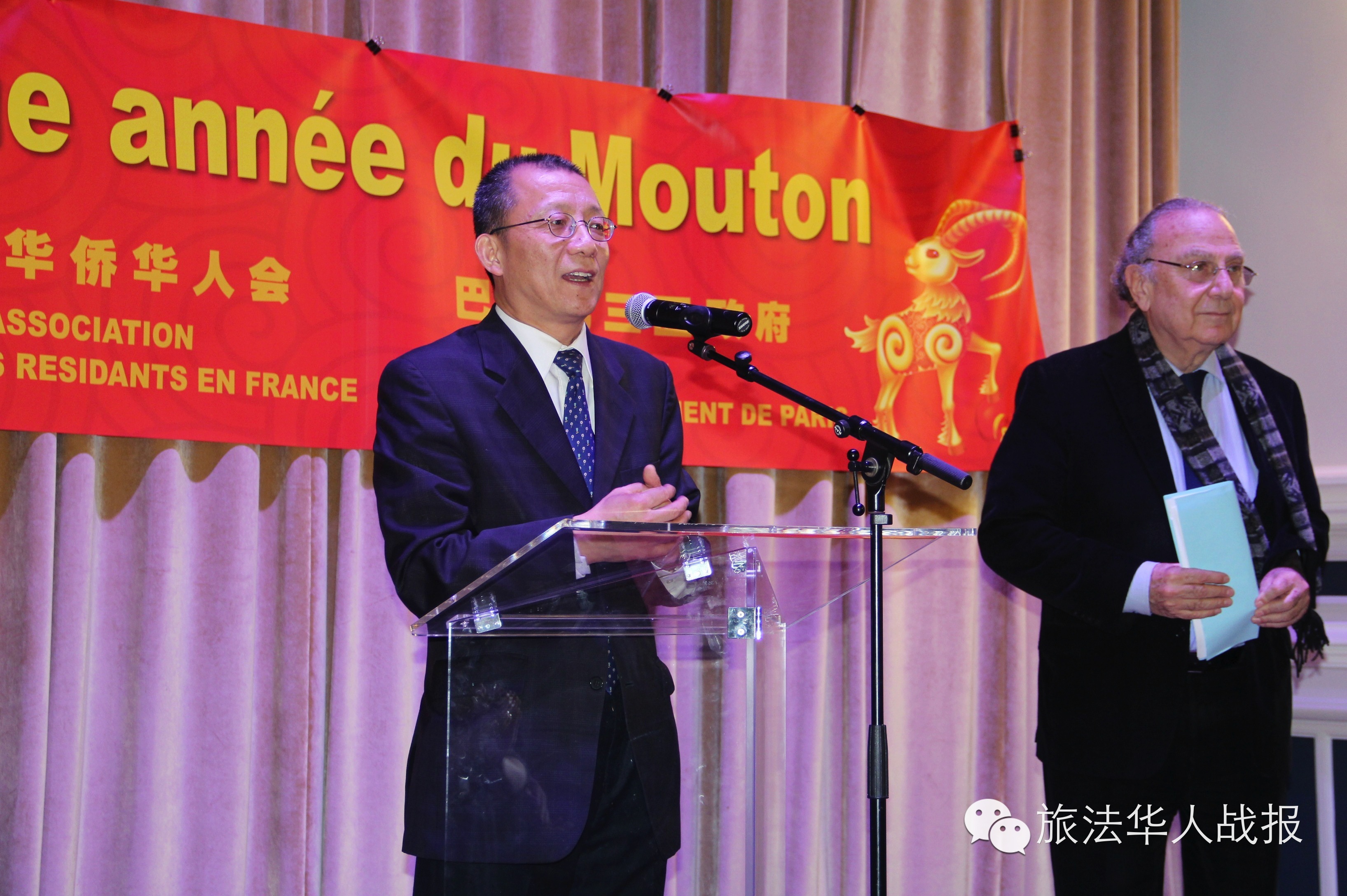 李平公参在致辞中首先向巴黎三区政府多年来对当地华侨华人的关心和支持表示感谢。李平公参表示,三区是华人在巴黎最早落脚的区分之一。如今,华人在经济社会生活中扮演着越来越重要的角色,商业发展活跃,与三区的法国居民友好相处,和睦融洽,这些离不开区府所做的工作。今年是中国农历羊年,李平公参幽默地提到,不管在外文中是山羊还是绵阳,在中文里,羊年都只有一种说法,所有的寓意也都指向吉祥。祝愿在三区工作和生活的中国侨胞和法国友人羊年大吉,安居乐业。