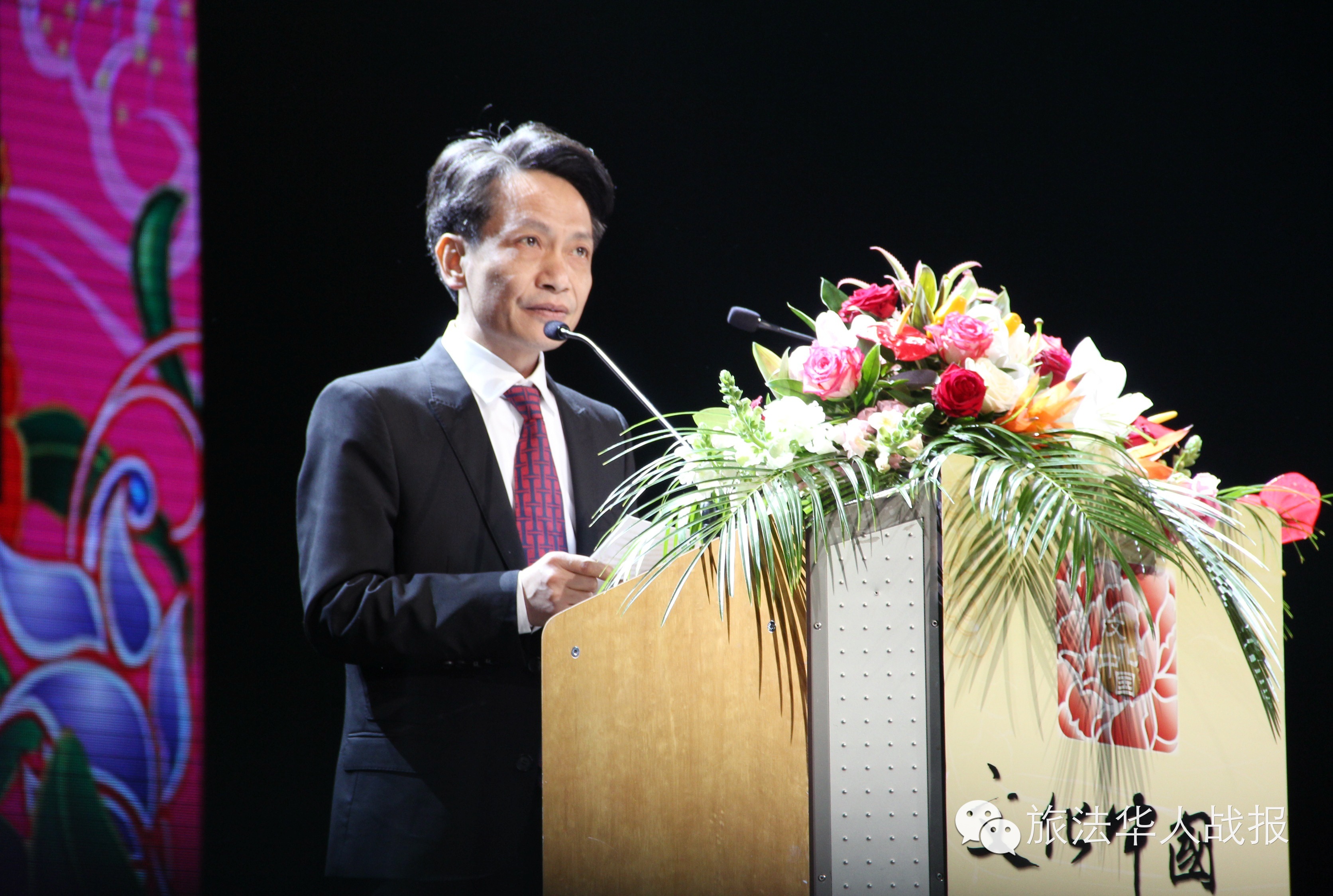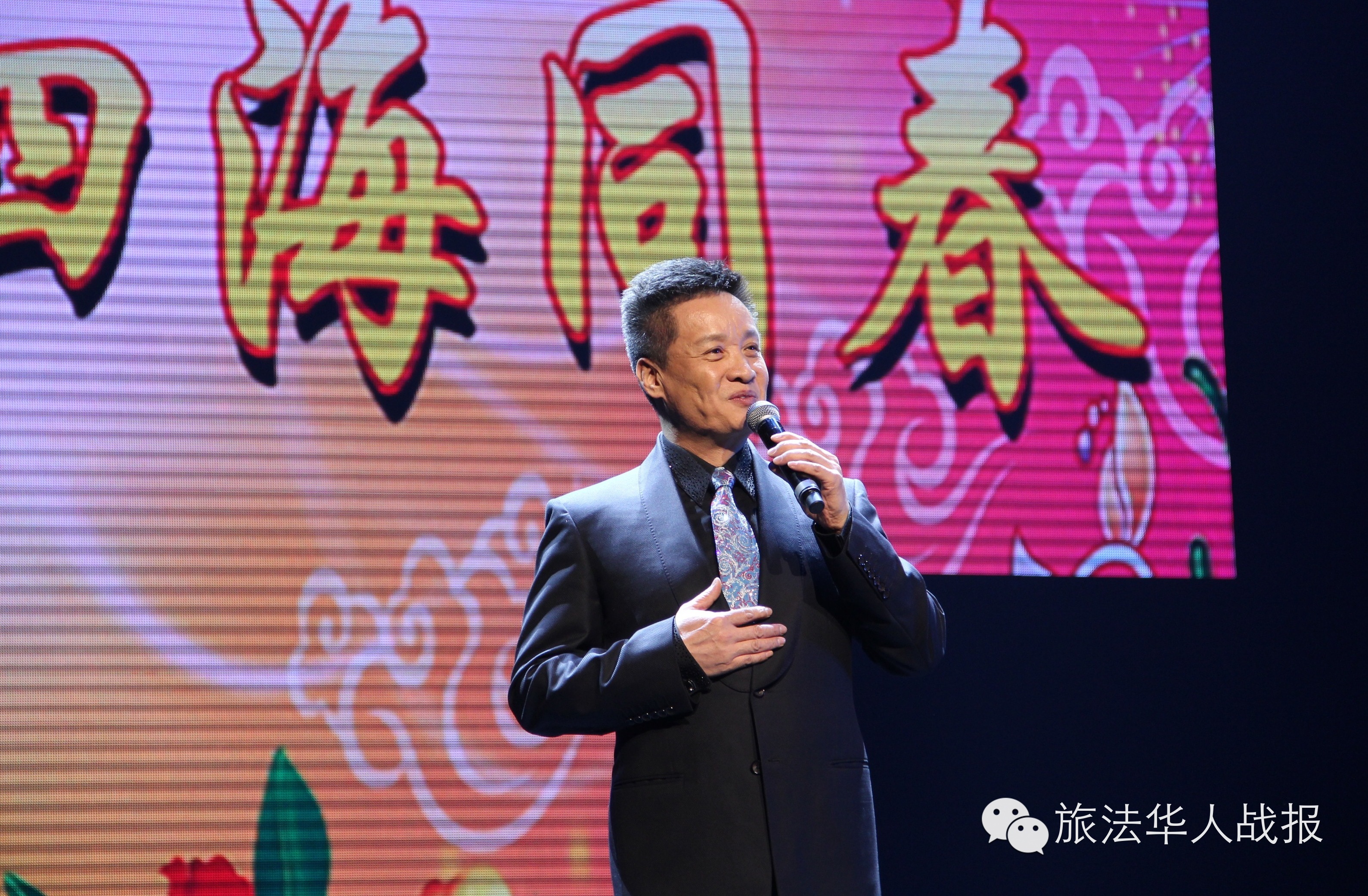 开场环节由法国潮州会馆会长吴武华主持。 裘援平主任在致辞中表示,“文化中国·四海同春”活动自2009年启动以来,每年春节期间都组派艺术团分赴海外华人聚居的国家和地区进行访演,今年的欧洲艺术团特别请著名导演丁伟来执导,为了迎合年轻侨胞的口味,除了蔡国庆、阎维文、董文华等国家一级演员班底之外,也特别邀请了“中国好声音”的年轻歌手赴欧献艺,希望每年的演出给侨胞带来新内容和新亮点。国侨办的工作就是为侨服务,无论侨胞身在何方,祖国都一直关心着大家,祖国人民都一直惦记着大家,借助“文化中国·四海同春”慰侨演出,希望与大家共度一个难忘的夜晚,也祝愿所有侨胞身体健康,幸福绵长。