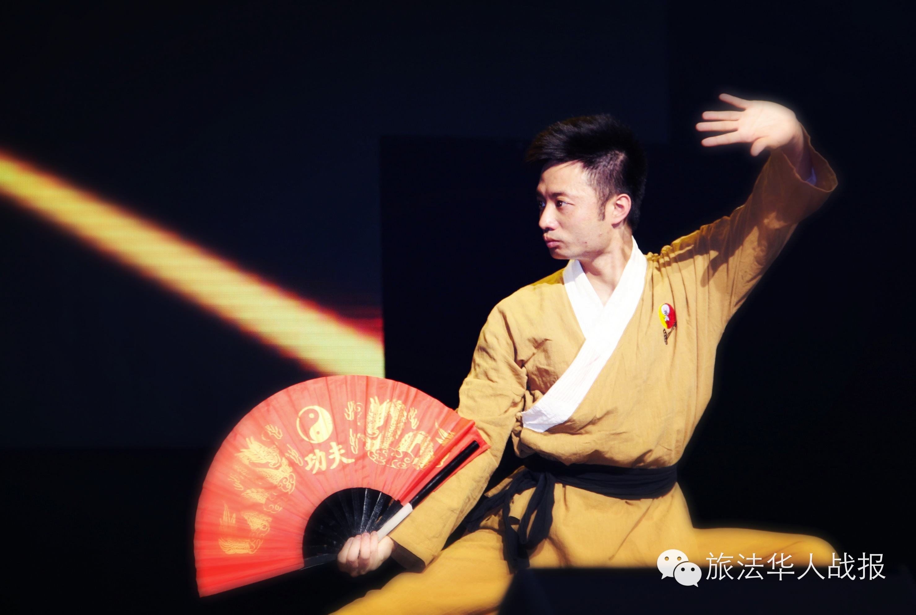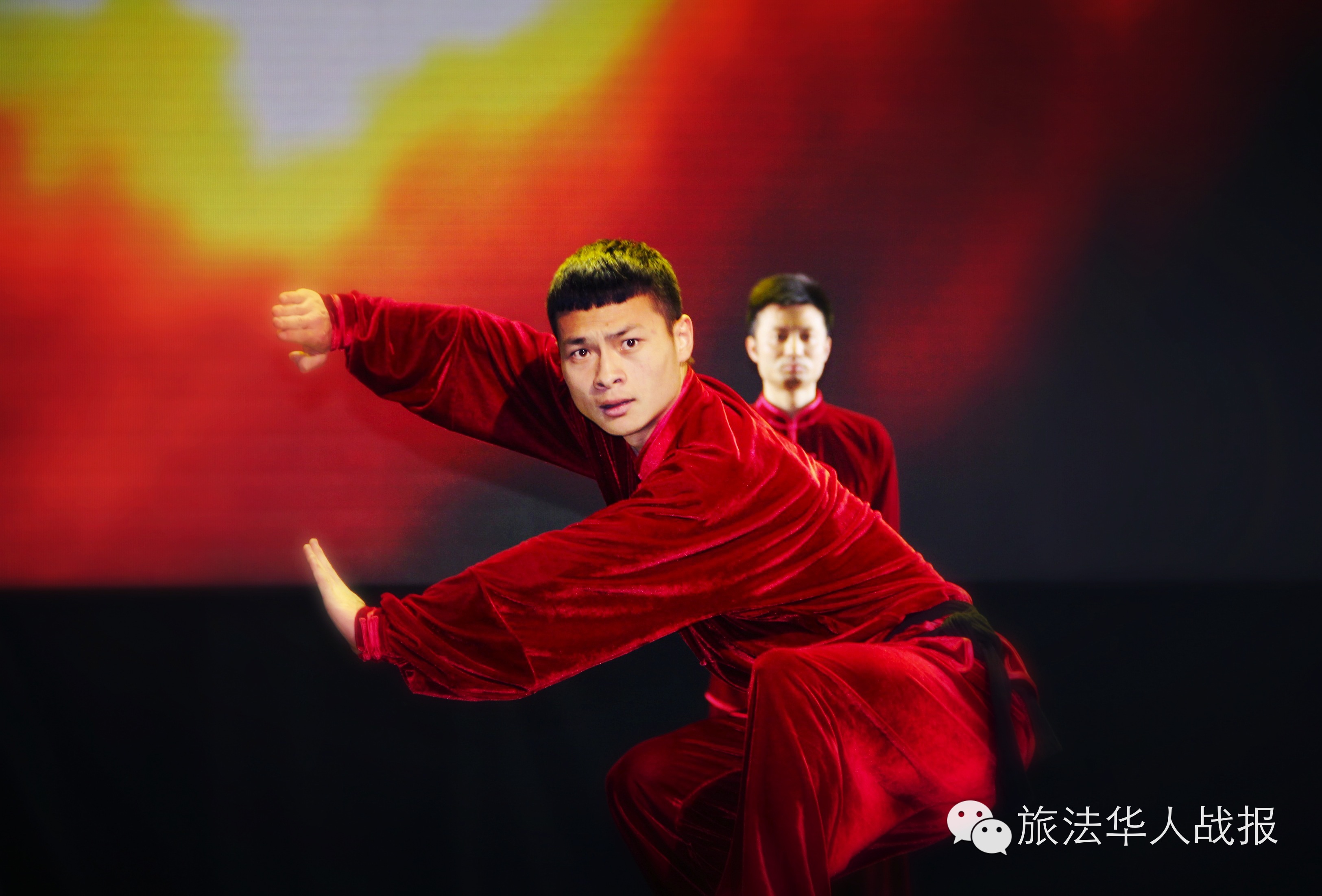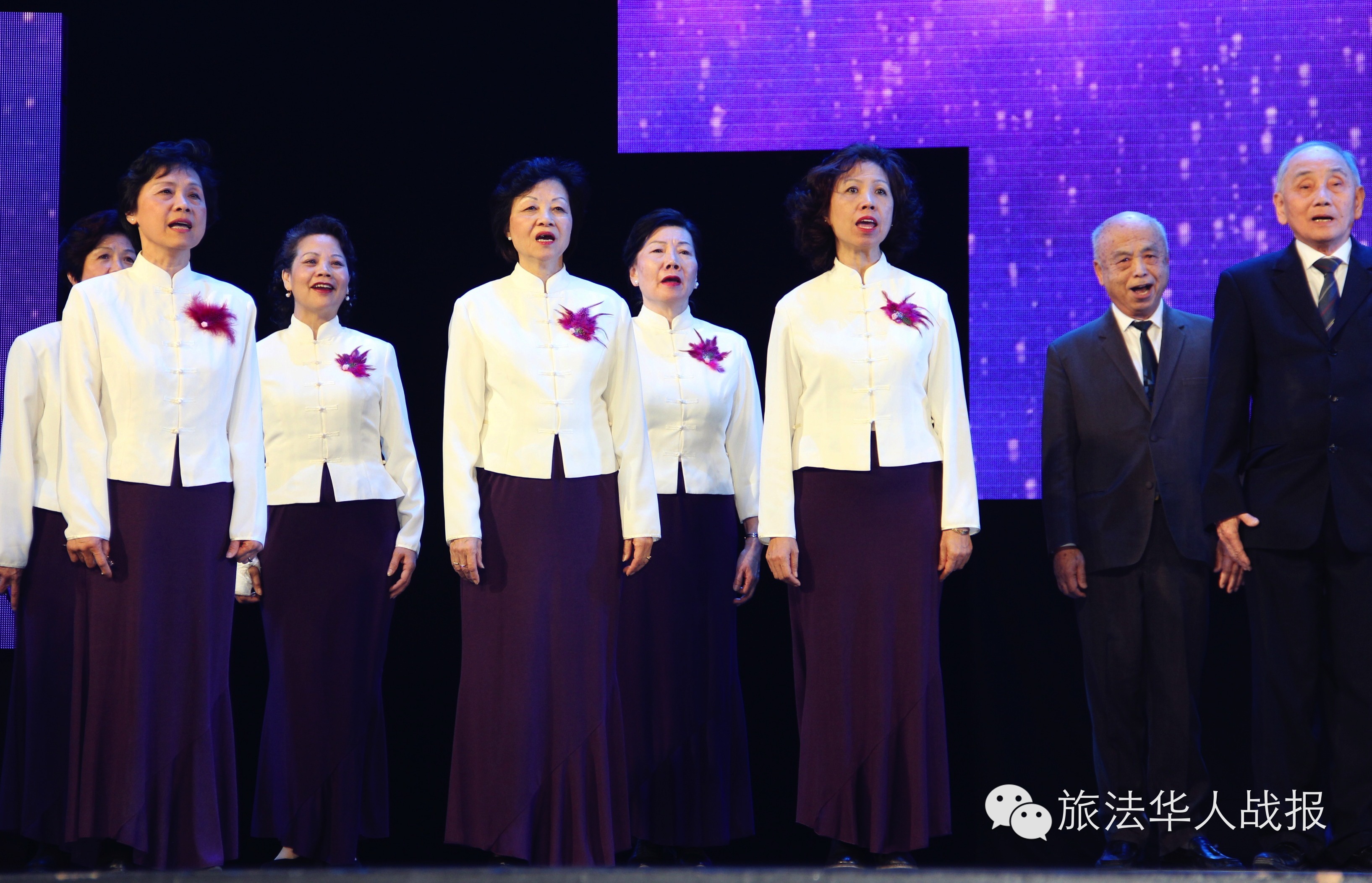 除了艺术团带来的专业演出,法国华人侨社和文艺团体也献上了自备节目为晚会增光添彩。欧洲时报丝绸之路合唱团的大合唱《今夜无眠》,用恢宏欢快的旋律表达了侨胞对祖国繁荣富强的祝愿。法国华侨华人会中文学校的舞蹈《中华儿女喜洋洋》,以中华民族荷花舞为基础,配合热烈的音乐《中国美》,完美呈现了海外侨胞庆佳节的喜悦心情和欢乐气氛,演员们手擎的红白蓝三色纸伞,也寄寓着侨胞对中法友谊常青的祈愿。