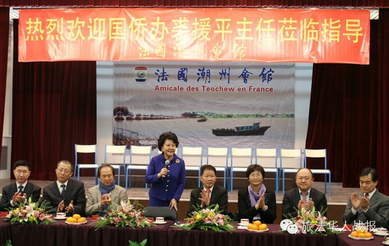 (战报实习记者 吴忱)2月28日,中国国务院侨务办公室主任裘援平走访法国潮州会馆,会见以吴武华会长为首的潮州会馆代表以及旅法华侨华人各界代表,向大家送去羊年祝福。中国驻法使馆领事部主任李平公参,一等秘书王原、李京生,巴黎市议员陈文雄(Buon TAN),法国潮州会馆永远名誉会长卢祥明,欧洲时报传媒集团总裁张晓贝等共同出席了此次活动。