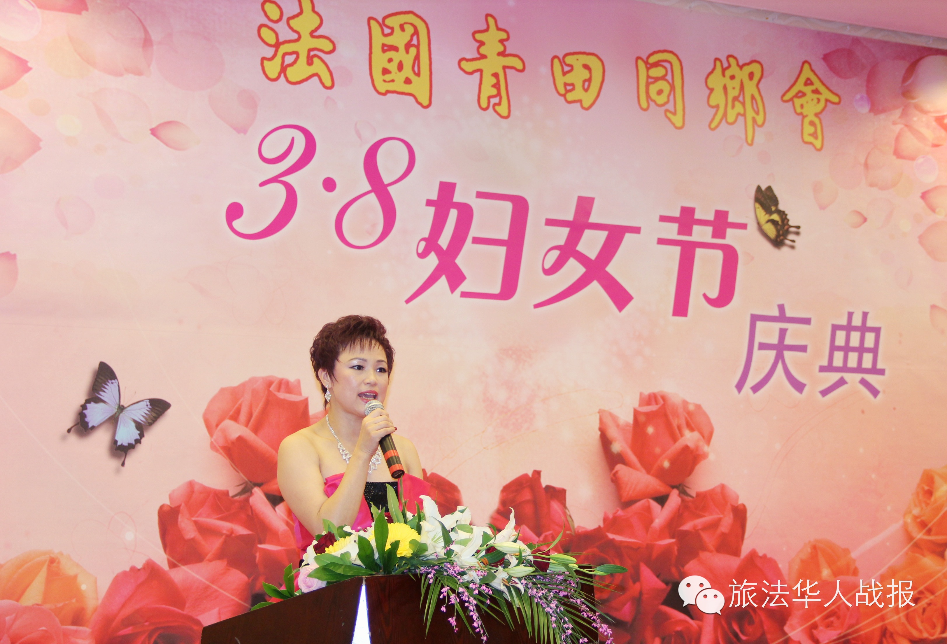 多年来,法国青田同乡会的姐妹们发扬中华妇女勤劳善良坚韧的美德,不但是家庭贤内助,也是侨界的生力军。新的一年,相信姐妹们一定会在自身事业和侨界活动中再创佳绩。祖(籍)国的发展将为身居海外的侨胞们创造更多发展机遇,不断提升的中法关系也将为侨胞们提供更广阔的发展空间,祝愿大家羊年吉祥,事业长青。祝愿姐妹们节日快乐,阖家幸福。