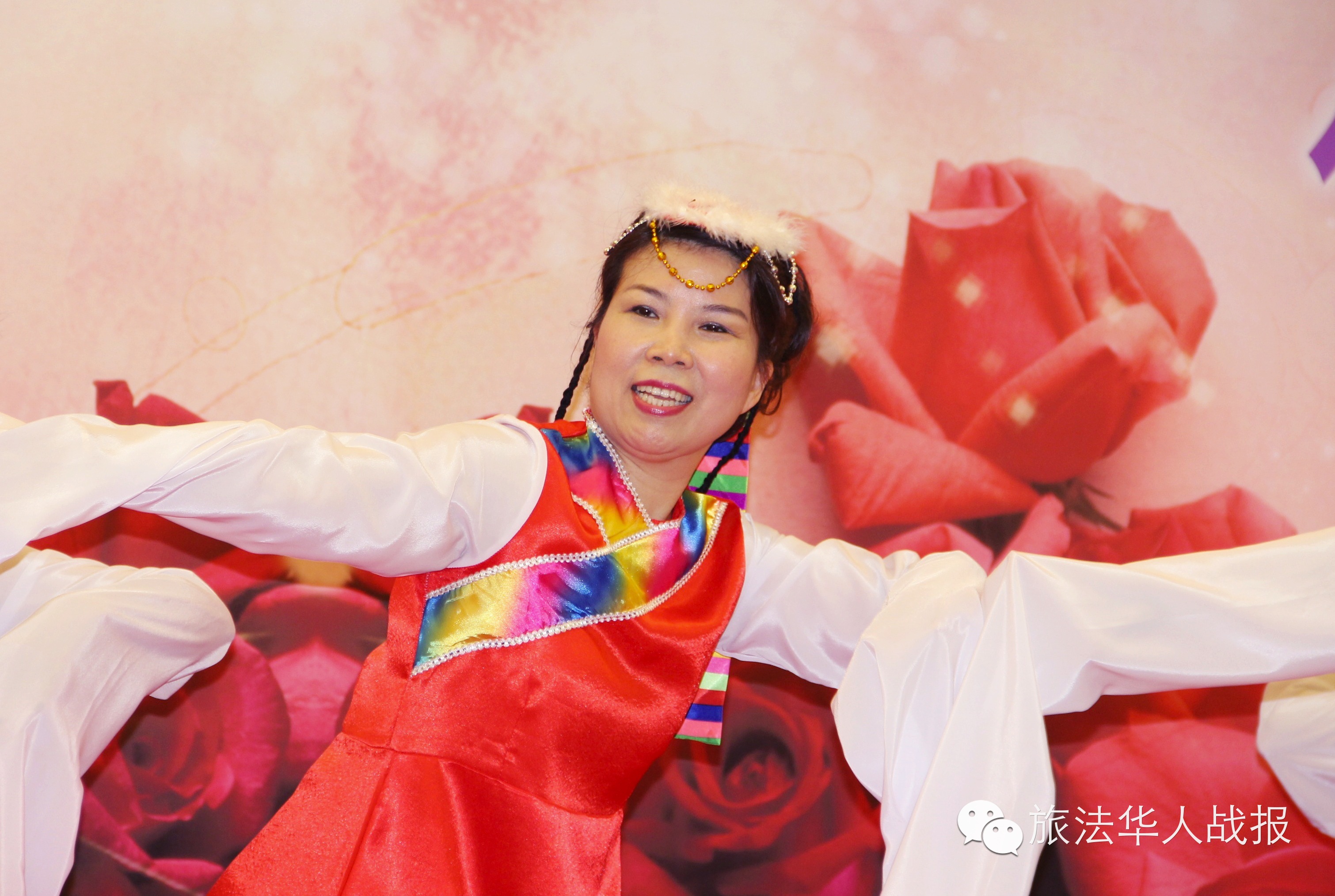 当晚,欢快喜庆的舞蹈《好日子》、韵味清新的舞蹈《茉莉花》、激越昂扬的合唱《自由飞翔》等精彩节目不断上演,法国青田同乡会的姐妹们尽展才情,博得舞台下掌声不断,嘉宾纷纷用手机和相机记录下精彩瞬间。第一副会长孙少荣也登台献艺,用一曲《母亲》传达对女同胞的敬爱和感激。