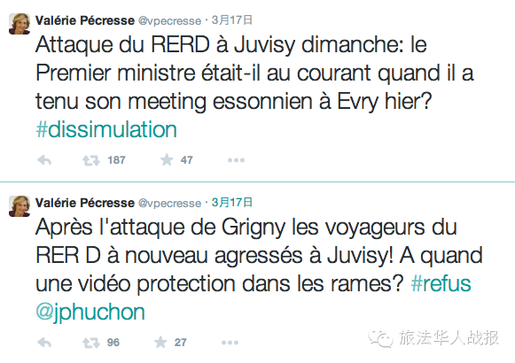 明抢乘客,殴打女孩 据法新社报道,事发后,一名17岁的女孩到埃松省Montgeron警察局报案。她被抢劫时想藏起手机不给,结果被拳打脚踢,手机最终还是被抢走。据悉,目前至少5名在D线遭遇这伙人抢劫的乘客报了案。据SGP工会警察分会披露,可能还有7人被抢劫。埃松省府表示,负责调查的巴黎警察局地区交通安全局正在就此进行统计。 2013年在D线发生过类似恶性事件。当时也是20多个年轻人,在Grigny站点附近拉响警报器,然后洗劫乘客,溜之大吉。这20多人当中多数是未成年人。 警方称远郊无人问津 人民运动联盟(UMP)党籍的Juvisy市长莱达愤怒地说,劫案发生后警方没有告诉他,也没告诉安全小组,如果不是媒体披露,他还不知道发生了这样的事,“太离谱了!” 而警察工会Alliance省代表卡里约解释说,治安部队忙于执行谨防海盗计划(Vigipirtate),人手不够,难以分身。他直言,“今天,巴黎远郊完全无人过问,我们无法承担所有任务。” 市长对此表示很遗憾,“我不明白为何Juvisy站不属于重点治安区。”他强调,元月制造巴黎恐袭案的恐怖分子古利巴里就是格里尼镇人,与Juvisy市相邻。 3月17日,人民运动联盟党籍的国民议会议员佩克莱斯(Valérie Pécresse)在推特上作出反应,再次要求大巴黎地区行政长官兼大巴黎地区交通管理公司总裁于雄(Jean-Paul Huchon)在地铁车内安装摄像监控镜头。 (责任编辑:鲁佳) |
