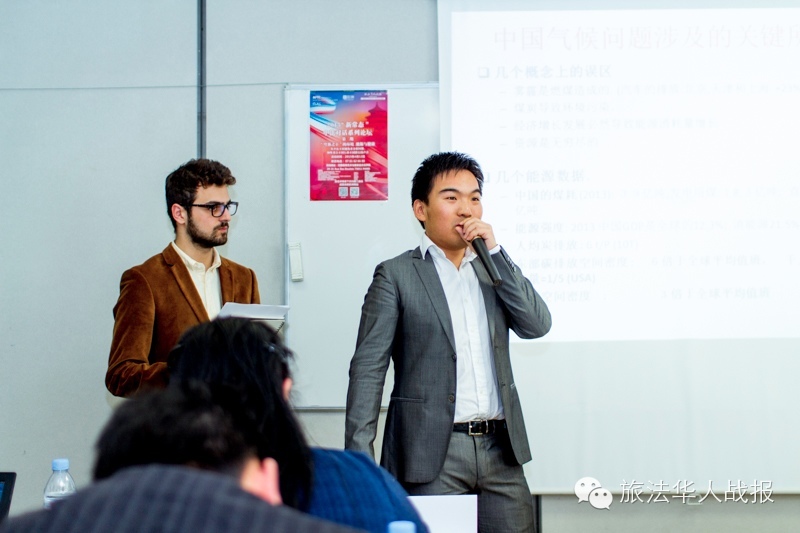 在法国电力集团工作的能源经济学家周苏燕说,中国正在从工业文明向生态文明转变,这涉及到经济结构的转变,比如把经济增速适当降低,这是否会对就业等产生影响,都是需要考虑的。周苏燕澄清了关于能源和污染的几个误解,比如其实经济增长未必导致能耗增长,要协调之间的关系,就要从储能和能效方面入手。可以肯定的是,未来的转型当中,科技进步与创新至关重要。 周苏燕强调,2015世界气候大会将于今年底在巴黎举办,各国聚焦的一个主要问题就是发展中国家和发达国家的生存权和发展权,其中,资金问题和技术转让问题将格外引起关注,对中国来说,也是非常重要的话题。 吴林:首先要建好能源基础设施 吴林博士用翔实的数据说明近年来气候的变化:2003年笼罩欧洲的热浪,2005、2008、2012年席卷美国的飓风,近年来人类癌症发生率的飙升等等,无不指向大气问题。吴林解读雾霾的成因,并指出近期困扰巴黎的雾霾其污染源在德国。 吴林指出,其实污染问题是可以解决的,一要控源,二要节流。而让能源利用更有效率,首先要把能源基础设施建好,比如打造紧凑型城市以减少用车的必要,推广节能车,建造绿色节能建筑等。 李天伦:多种方法可以提高能效 李天伦博士也指出,解决环境污染问题在技术上完全可以实现,这主要是经济问题,而经济需要政治去推动。李天伦举例说,清洁能源方面,比如北京不少出租车可用天然气,天然气的价格也不高,但加天然气的站点太少,这种基础设施要跟上。潮车特斯拉(Tesla)也是一例,虽然有效减少了燃油消耗,但充电的基础设施少,充电速度慢,若选择快速充电则充电负荷大,有很多局限性。 李天伦建议从多方面提高能效,比如建筑方面使用保暖建材;发展生态工业园,实现不同公司之间的能源整合循环利用;将能源与IT技术相结合,打造智能家庭,使家庭用电和能源消耗自给自足;利用手机新应用,鼓励出行拼车等方式节能减排。李天伦强调,能源与环境息息相关,要治理环境污染,首先每个人要从自身做起,让自己的生活更绿色。 乔京:中国的环保法律框架 乔京律师介绍了中国环境保护的法律框架。据介绍,中国已将环境保护写入宪法,并制定了各层级的配套措施,秉承“预防为主,防治结合,公众参与,污染者负担”的原则,环境保护在政策层面正在向着健康良性方向运行。 乔京指出,玛雅文明的灭亡就是由于生态问题,生态危机的直接后果就是物种灭亡,这不是危言耸听,如今环境污染已经到了临界点,对于人类来说是一个迫在眉睫的课题。 惠方民:对下一代的教育至关重要 惠方民博士用生动活泼的图文形式,为与会者介绍了不同出行方式下,雾霾对健康的影响,并介绍了在“十面霾伏”的环境里如何防病,比如使用口罩、空气净化剂等物品,避免雾霾天气进行晨练等等。 惠方民特别指出,要想实现环境和资源的可持续性,最重要的一条是抓紧下一代的教育,让孩子们从小形成这一观念。 鞠丽雅:环境污染可致癌不是传说 鞠丽雅博士从医学角度,分析了人体免疫力的由来和癌症的成因,指出雾霾的确是健康的一大杀手,随着年龄的增长和抵抗力的下降,罹患疾病的可能性也大幅提高,“20岁左右人体的免疫能力达到峰值,但到50岁以后急剧滑坡,各种疾病随之找上门来。”此外,抑郁和负面情绪都会增加患癌的可能性。 鞠丽雅提出,保持身体健康不仅要“扫窗外的霾”,还要“扫身体的霾,扫心中的霾”。 吴秦:雾霾危机中也蕴藏着机遇 谈到污染问题,第二次做客“新常态中法对话系列论坛”的吴秦博士说,当一个问题被正确地提出,答案已在其中。另外,雾霾是一种危机,但危机中也蕴藏着机遇,创新创业人才可以着手科研,在解决环境污染问题造福人类的同时,创造新的经济增长点。 现场 当天,近百名与会者认真聆听了嘉宾的解读,其中有在环保领域工作三十多年的专业人士,也有环境和能源专业的学生,以及来自法国电力公司等能源机构的工作者。答问环节,大家与嘉宾积极互动,就新型能源的使用和推广、国际社会能源使用权和国家发展权等方面的问题提出自己的看法。周苏燕等嘉宾也将论坛上讨论的要点记录下来,以供研究。与会者在论坛结束后纷纷向主办方索取ppt等资料,大家表示,探讨的主题非常有意义,干货很多,获益匪浅。