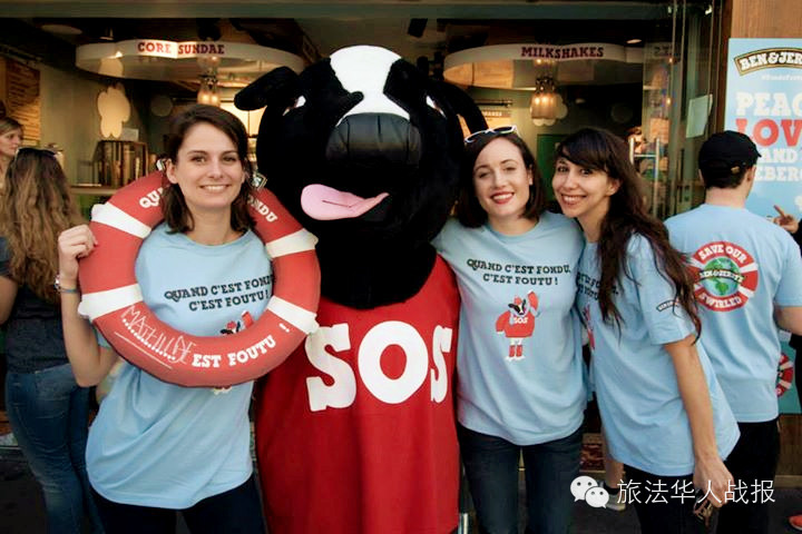 (战报实习记者 吴忱)4月14号,Ben&Jerry延续自1978年成立以来的传统,每年这天在世界各地免费发放冰淇淋。当天,记者前往Ben&Jerry巴黎店,目睹公众排队领冰淇淋的盛况!不过如果您没领到也没关系,17号也就是明天,活动仍将继续。 [attach]2268431[/attach] 美国的Ben&Jerry冰淇淋被称为全球“最有趣”的冰淇淋。14号本周二中午12点到晚上19点,每位到店里的顾客都可以得到一支免费的甜筒冰淇淋。今年,Ben&Jerry借由这样一个机会,也向全社会发出“支持环保,关注全球变暖”的呼吁。战报记者在活动现场看到,上万市民和游客领到不同口味的冰淇淋,据工作人员介绍,按往年的经验,他们今年准备了100万份免费冰淇淋,希望能让更多的人参与到这个活动中来,了解Ben&Jerry,同时也更加关注全球变暖等环境问题。