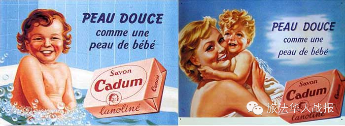 Cadum是法国著名的婴儿用品制造商,始于1907年,主打产品包括一系列母婴洗浴用品以及婴儿爽身粉等等。香皂呢,最经典就是杏仁油保湿润肤皂啦! 粉色包装这款,采用杏仁油精华,古法制造,天然温和,不含任何防腐剂,能够缓解皮肤干燥造成的瘙痒不适。 绿色这款始于1926年,特别添加了维他命E,非常滋养。Cadum历经百年的一句广告语就是:让皮肤像婴儿一样! 来欣赏下这些萌萌哒有爱广告图: