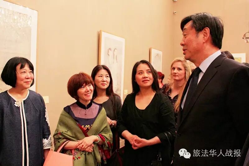 翟隽大使在巴黎中国文化中心主任殷福以及参展画家的陪同之下参观了所有展区的绘画作品,仔细聆听画家的创作感受和画作背景,并对画家精湛的技艺和出色的表现方式大加赞赏。翟隽大使非常重视这样的活动,他认为,中法之间的文化交流在中法双边关系中具有重要意义,他鼓励此类活动的开展,希望中法两国的女画家在这样优质的平台上能够增加沟通,增进友谊。最后他祝愿此次展览能够圆满顺利地举行。
