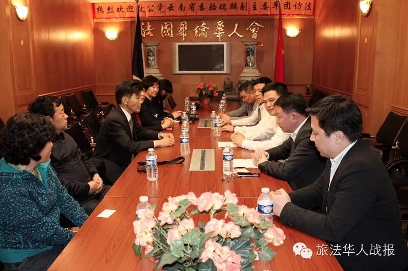 (新欧洲战报记者 吴忱)5月9日,致公党云南省委代表团一行六人来法访问和考察,受到法国温州商会会长胡镜平、法国华侨华人会第一副主席任俐敏、法国华助中心主任郑金标等人的热情接待。考察团一行与旅法华侨华人座谈,了解侨胞的生活和事业发展情况。法国温州商会第一副会长万邦韩、秘书长陆晓锋等法国温州商会会长团成员参加当天的活动,中国驻法使馆领事部一等秘书王原应邀出席。