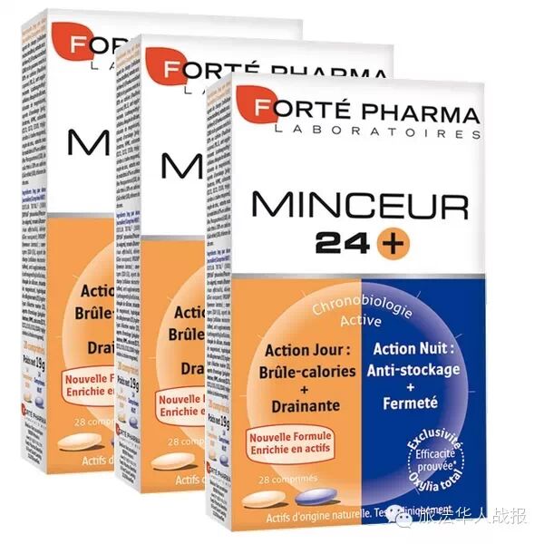 这款减肥品的成分中含有刺梨和咖啡碱,是通过植物治疗法燃烧脂肪,安全瘦身,从而达到减肥轻体重的目的。除了燃烧脂肪,抑止饥饿感,本品还能提神醒脑,保护心脏。 Forte Pharma日夜纤体瘦身片
