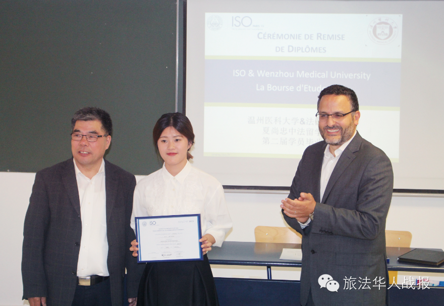 (新欧洲战报实习记者 王希)5月21日晚7点,第二届夏尚忠中法留学奖学金项目毕业典礼顺利举行。典礼由法国高等视光学院(ISO optique)和温州医科大学共同举办,知名华商、法国华人进出口商会名誉会长夏尚忠,与法国高等视光学院董事长Stéphane先生共同为完成这一交换项目的温州医科大学学生和游学企业家颁发毕业证书。 ![]() Stéphane先生在毕业典礼上对毕业生们表示热烈祝贺,对他们在法国的专业学习和在香榭丽舍大道眼镜店的实习给予高度评价和赞许,称通过这段时间的学习和实习,不仅提高了专业技能,而且吸收了异国文化,相信对今后的职业生涯大有裨益。 夏尚忠先生在发言中介绍了他设立“夏尚忠中法留学奖学金”的初衷,他表示,中法文化交流日益密切,有必要让更多的中国年轻人走出国门,也有必要让更多的外国人了解中国,设立奖学金就是鼓励这种文化交流的一种方式。他表示,今后还会持续提供更丰厚的奖学金,让更多中国优秀学生有机会来法国留学,促进中法两国人文交流。
