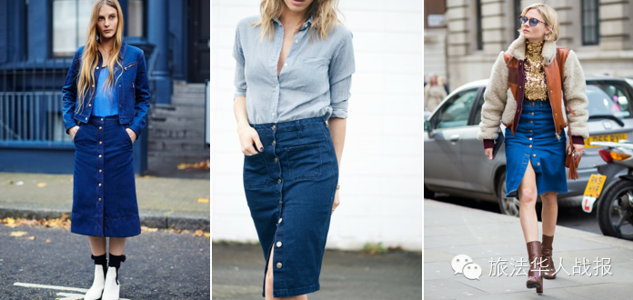 排扣裙可视为70年代的缩影,不管是驼色迷你排扣裙或者单宁排扣长裙,在现在这种季节都十分合适呢!搭配一双绑带高跟鞋、运动鞋、T-shirt、衬衫或者硬挺的夹克…..都可以和排扣裙完美搭配。看完以下街拍达人以及Blogger的穿搭后,赶紧为自己的衣柜里添加一件复古的排扣裙吧!