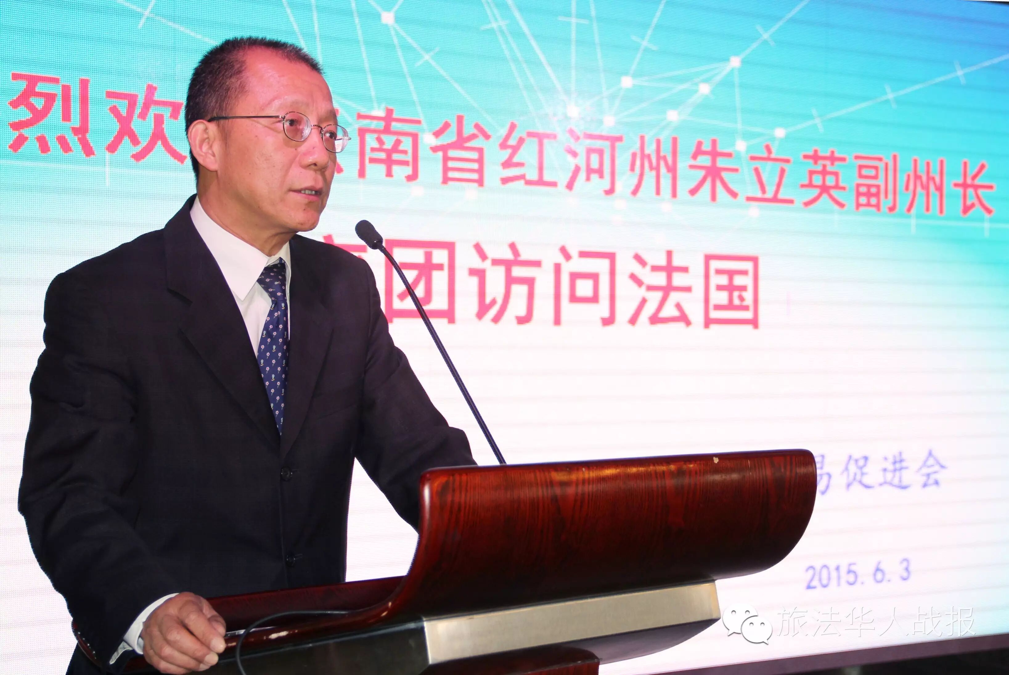 法国华人贸易促进会会长温晓光致辞说,“云上梯田-梦想红河”法国文化周于6月1日在巴黎威斯汀酒店拉开帷幕,面向法国观众展示当地独特的文化和旅游资源,大受欢迎,在此向红河州代表团一行付出的心血和智慧表示由衷的敬意。同时,也向莅临本次侨界推介会的嘉宾表示感谢。 温晓光谈到,红河州副州长朱立英在法国任参赞时,就与旅法侨界包括法国华人贸易促进会结下了深厚的友谊,本次朱立英副州长来法推介云南红河州的文化和旅游项目,故知相逢倍感亲切,祝愿代表团此行硕果累累。温晓光表示,法国华人贸易促进会是一个朝气蓬勃、实干进取的社团,愿与各兄弟侨团一道,在祖(籍)国日益强大的感召下,在中国驻法使馆的指导下,为云南走到法国乃至欧洲、显赫世界尽自己的一份力量。也期待“云上梯田-梦想红河”法国文化周连年举办,期待法国与云南的再一次文化撞击与震撼。 当晚的推介会上,红河州副州长朱立英详细介绍了当地的现况以及与法国的渊源。红河州位于滇南,接壤越南,而越南曾是法国殖民地。当年法国修建滇越铁路,从越南修到云南昆明,1910年通车迄今已逾百年。滇越铁路越境就是经由红河口岸,该路段最险也最美,红河境内的人字桥路段,据信与埃菲尔铁塔所用是同一批钢材和相似的技术。近日法国驻华大使Gourdault Montagne受邀到访红河,参观碧色寨火车站时感叹如同到了南法,感谢当地悉心保护法国历史遗迹。 朱立英介绍说,红河有七张名片:三个一千,四个一百,加起来统称“3400年”。具体亦即:千年哈尼梯田;千年临安古城;千年建水紫陶;百年滇越铁路;百年开埠通商;百年云锡矿业;百年过桥米线。现在国家实施“一带一路”战略,西南地区正处于这一战略的重要出口,红河州拥有铁路和高速公路直达越南,国际大通道初具规模,还拥有综合保税区和国家级经济开发区等重要平台,投资兴业条件便利。朱立英回顾说,自己曾在中国驻法使馆工作10年,而今重游这魂牵梦绕的地方,受到温晓光会长安排的接待,与李平公参及侨界好友们相聚共叙,内心十分感动,感谢大家参加本次推介会,也欢迎大家前往红河州旅游考察。