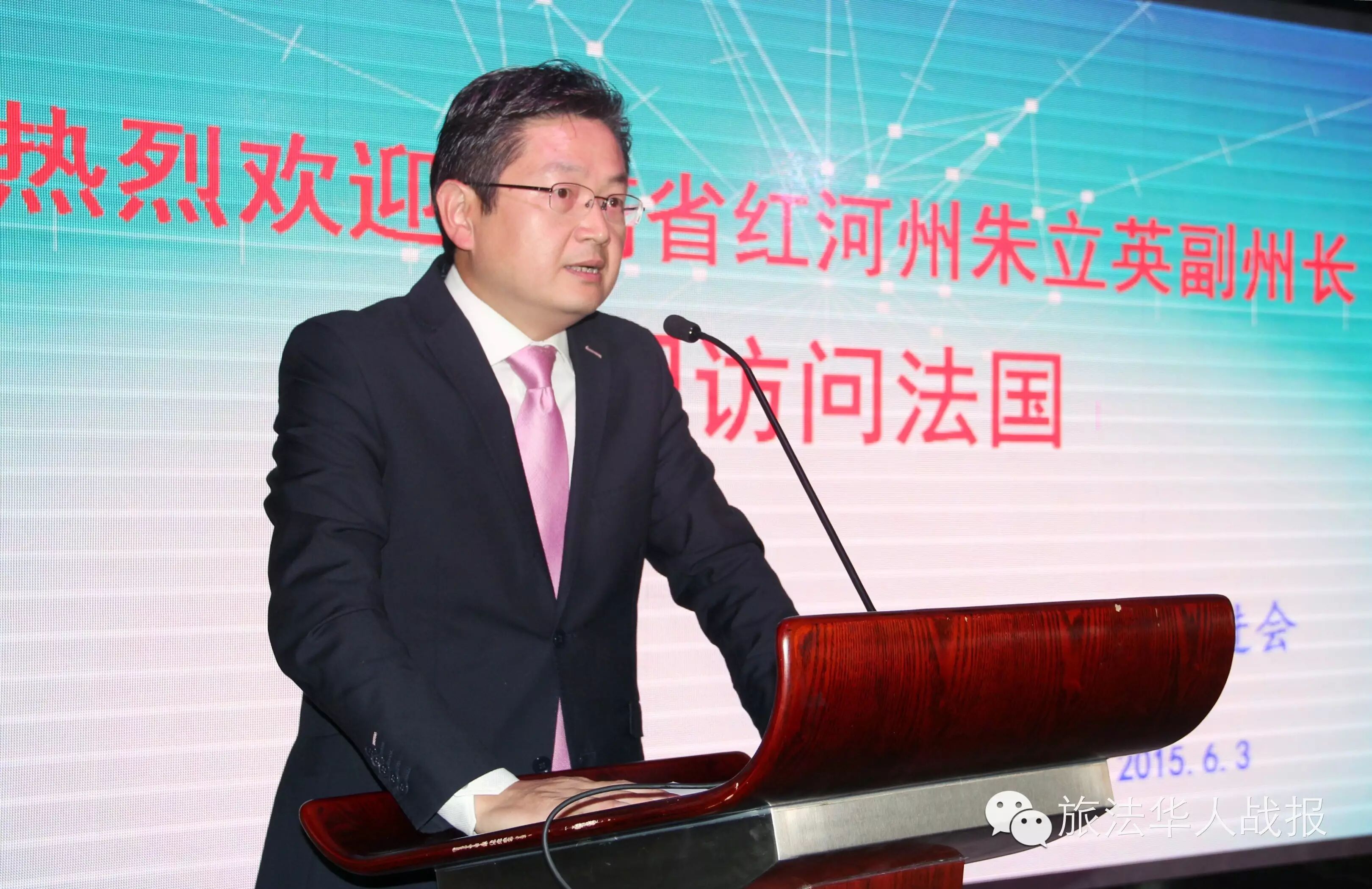 (新欧洲战报记者 鲁佳)6月3日晚,法国华人贸易促进会在巴黎华天中国城大酒店金阁餐厅接待来巴黎举办“云上梯田-梦想红河”法国文化周的云南红河哈尼族彝族自治州(红河州)代表团一行,副州长朱立英面向旅法侨界进行当地文化和旅游推介。中国驻法使馆领事部主任李平公参以及法国侨界、商界、传媒界代表百余人出席当天的专题推介会。