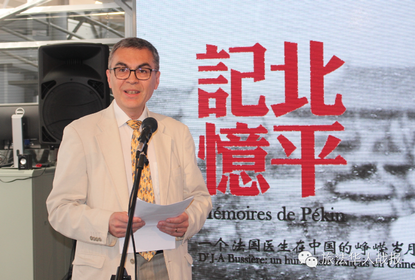 (新欧洲战报记者 王希)6月7日下午,《北平记忆——一个法国医生在中国的峥嵘岁月》展览在欧洲时报文化中心揭幕。欧洲时报传媒集团总裁张晓贝、中国驻法使馆公使关键、贝熙业之子贝石涛、让蒂利市(Gentilly)市长多吉芒(Tordjman)女士参加揭幕式并分别致辞。中国驻法大使翟隽为展览专门题写贺词,祝贺展览在纪念反法西斯战争胜利70周年之际举办,强调中国人民和历史不会忘记贝熙业医生(Jean-Augustin Bussière)对中国的友好感情和对中国和平正义事业的支持。 张晓贝先生在开幕式上致辞说,今年是纪念世界反法西斯战争胜利70周年,欧洲时报传媒集团举办《北平记忆》图片展,旨在纪念为反法西斯战争做出卓越贡献的法国医生贝熙业。抗战中,许多外国朋友冒着生命危险,与中国人民并肩战斗,贝熙业就是这样一位无名英雄。张晓贝先生还对贝熙业之子贝石涛以及其家人对这次展览的支持表示感谢。