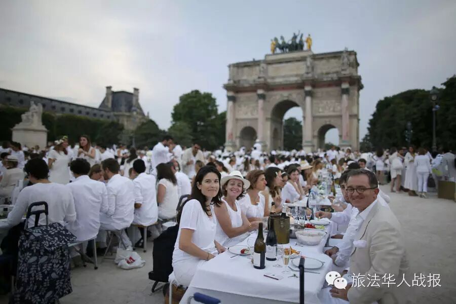 据央广网报道,白色晚宴,又称白色长街宴,始于1988年,是浪漫之都法国巴黎一年一度的传统活动,参与者必须身着白色服装,自带食物、酒水和餐具。