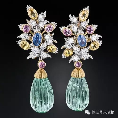 色彩也是葡昔拉蒂的一个特点。很多人说葡昔拉蒂太过俗艳,指的是其古典雕琢和珠宝装饰,但我要为葡昔拉蒂辩护一句,这不叫俗艳。仔细看,同样用珠宝,葡昔拉蒂极少使用意大利当红品牌宝格丽那样色度饱满的宝石,葡昔拉蒂的蓝也好、红也好、绿也好,都似隔着一层什么,将低调华丽拿捏得恰到好处,增一分则太艳,减一分则失色,流光暗哑,完全是王室风范。