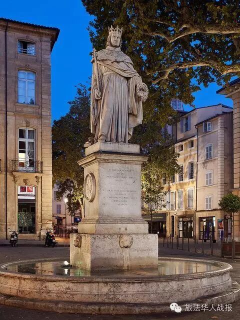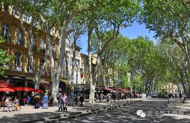 梵高艺术中心的门上刻着“HOTEL DIEU”,这里面曾是梵高在阿尔勒住的医院。1888年2月,梵高因精神失常割下了自己左耳垂,被送到这家医院接受治疗。1889年4月梵高绘制了《阿尔勒医院中的花园》(Le Jardin de la Maison de Santé à Arles),画中描绘了当时医院中庭花园的景象。随着追寻梵高足迹的游人的增多,医院迁往别处,此地改为旅游景点。 圣托菲姆教堂,是阿尔勒城内的一座罗曼式教堂,其带有古罗马遗风的西立面,为普罗旺斯罗曼建筑艺术的代表作之一,教堂南侧的回廊同它一起见证了阿尔勒这座曾浸润在古罗马文明中的古城融入西欧中世纪文化的进程,并以此与竞技场、古剧场等古罗马遗迹一起被列入联合国教科文组织《世界文化遗产》名录。 艾克斯 艾克斯(Aix en Provence)是南法最美的小城之一,这里也因塞尚而闻名。这是塞尚的故乡,从市区到近郊,有许多留有塞尚足迹的故居、画室、家族遗产等建筑物。