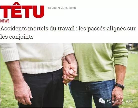 (新欧洲战报记者 王希)6月13日周六,法国公布一项新政策。同居者,不管有没有签同居协议(Pacsés),都享有和有婚姻关系配偶平等的权利:如果一方在工作中发生事故死亡,或者因为工作关系导致生病乃至死亡,同居伴侣今后都享有遗产继承等属于未亡人的权益。 法国大力保护同居权益 这项新法令13日在《宪报》上发表,该法令传达了2012年财经法对于社会安全保险问题的法律精神。在一方因工伤导致死亡的情况下,同居的另一方和正式结婚的夫妻一样可以得到相应补偿,补偿金是去世一方年薪的40%,这笔钱由社会保险支付。相同的赔偿金还将支付给他们的孩子,直到孩子年满20岁。