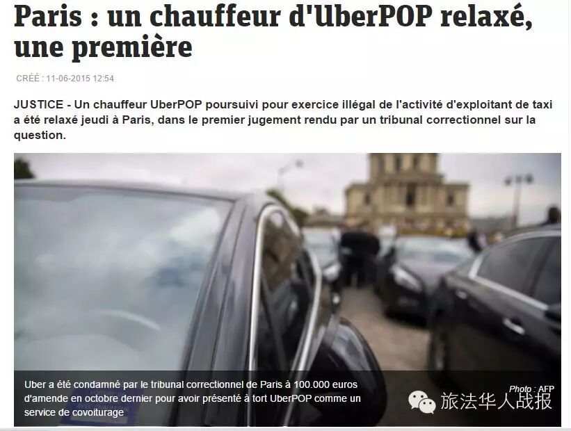 (新欧洲战报记者 王希)一个UberPop司机涉嫌同出租车违法竞争载客,被起诉了。但6月11日,轻罪法庭判决这名司机无罪释放。这是轻罪法庭首次关注此类问题。 Uber(优步)的合法性问题争议很大。在法国被大部分出租车司机疯狂吐槽,说这是不正当竞争。5月,根据司法规定,150份UberPOP司机的资料正在被调查,有些被多次罚款,罚金100多欧。最严重的是去年10月底,由于Uber公司误宣传Uber为一项拼车服务,被巴黎法庭判罚10万欧元。 但对于本案,法庭在判决中称,交通压力繁重,出租车有限,那些不在道路上寻找乘客的Uber司机并不构成犯罪,本案被起诉的司机,仅仅是服务了一个通过UberPOP预订了他车的客人。 巴黎轻罪法庭表示,法律对此有明确规定:出租车的运营活动要和一般私家车明显区分开来,其最主要的区别在于,出租车可以在公共道路上停车和行驶,寻找乘客,而私家车不行。所以,不在公共道路上行停拉客的Uber并不违法。