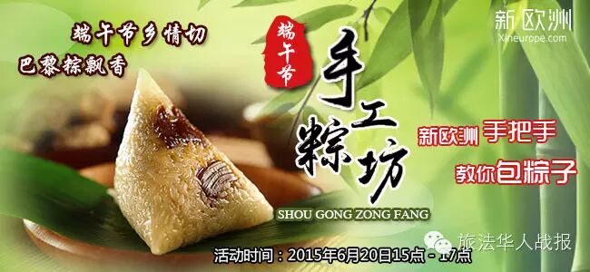 (新欧洲战报记者 王希 吴忱)“自己动手,丰衣足食”,就是在法国,新欧洲也不忘毛爷爷的谆谆教诲呀,6月7日星期天,天朗气清,惠风和畅,嗯,新欧洲组织的一年一度“烧烤趴”又拉开了序幕!60多位小伙伴坐着大巴唠着嗑儿,甚是有小学生春游的赶脚,一会儿功夫就来到了巴黎郊区的圣冈丹休闲基地(Base de loisirs de Saint-Quentin-en-Yvelines)活动地点。 辛勤的工作人员们很快拿出了事先准备好的肉类、蔬菜、饮料、碟子和串肉切肉的一系列工具,真是细致到家,无所不有。大家自动分工,有的切肉,有的穿串儿,还有自告奋勇的男生们搭烤架倒木炭生火。不一会儿,桌上就堆满了五颜六色卖相极佳的串儿。另一边,烤架已经准备好,木炭已经开始燃烧。 真正进入大家期待已久的烧烤环节啦!大家忙得不亦乐乎,递串,加烧烤料,添木炭,在一旁扇风助燃。在火热又协调的配合下,一串串香味扑鼻的串儿进入大家的盘子里,赞美之声不绝于耳,新鲜的牛羊肉鸡翅还有蔬菜让大家胃口大开,吃得津津有味,甚是开心。 美好的时光总是过得很快,大家恋恋不舍意犹未尽,但是奈何肚子都已经再也塞不下任何东西了,这次“烧烤趴”在大合影中完美结束。 ![]() 夏天的风儿,和煦的阳光,美味的烤串,生活难道不应该就是这么美好吗?俗话说的好,没有什么问题是一顿烤串解决不了的,如果真不行,那就来两顿吧,新欧洲“烧烤趴”年年期待你的参加! “烧烤趴”是新欧洲社区的常规活动,在线上线下会员的支持下,一年比一年声势浩大、精彩纷呈。除此之外,新欧洲长期推出“美食风向标”、“八分钟约会”、“法律咨询”等活动,也都丰富着在法小伙伴们的生活。 包粽子 没有参加到火红火红“烧烤趴”的朋友们不要懊恼,新欧洲是您生活、娱乐、商业全方位的助手!端午将近,新欧洲“手工粽坊”邀大家一起包粽子。 在端午节到来之际,亲手包粽子,不仅增加节日气氛,还能品尝自己的劳动成果,何乐而不为呢?或许你已经在法国生活多年,思念国内端午时候粽叶飘着清香的故乡味道;或许你的孩子从小就生活在这里,怎么都不能体会楚国离骚的风韵,那么带孩子来参加“手工粽坊”的活动,不仅能增进亲子互动,还能寓教于乐。
