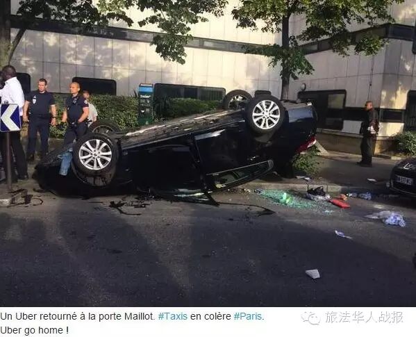 (新欧洲战报记者 王希)今早,巴黎出租车司机组织起来联合行动,在巴黎市区和周边郊区进行“蜗牛行动”,用大规模罢工游行来反对私人出租车和非法的Uber(优步)打车服务,法国出租车司机与打车软件之间的冲突再次升级。 警方已出动催泪弹 据《巴黎人报》报道,这次巴黎出租车司机罢工游行规模浩大,目标地点针对法国机场和大型火车站,戴高乐机场、奥利机场、巴黎北站(Gare du nord)、里昂火车站(gare de lyon)、蒙帕纳斯车站(gare de Montparnasse)、Place Denfert-Rochereau和Porte Maillot是重点受灾区,巴黎西面两个方向的主要交通持续关闭,通往戴高乐机场和奥利机场的道路一直拥堵,受“蜗牛行动”影响的还有几条开往巴黎的高速公路。 在Porte Maillot,出租车司机和法兰西共和国安保部队的关系非常紧张,安保部队试图安抚出租车司机,但一些示威者们和他们的竞争对手发生言语及肢体冲突,出租车司机掀翻了数辆私家车,并意图焚烧车辆,镇暴警察对示威者投掷了催泪弹。 涉及全法多个城市 在外省,里尔、马赛、里昂、图卢兹、尼斯都加入这次罢工游行。