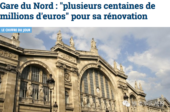 巴黎北站(Gare du Nord)2015年启动大规模翻修工程。法国国营铁路公司6月24日公布八年翻修计划。按计划,翻修工程于2015年启动,持续到2023年完工,工程分段进行,期间不影响车站每天2000趟车次的进出站及70万人次的客流。 环球网援引法国国际广播电台报道,巴黎北站工程分为几个阶段,2015年主要翻修大巴黎地区B线和D线快线地铁候车厅,改善大厅面貌。2016年,将开张一家由星级厨师蒂埃尔-马克思(Thierry-Marx)主理的啤酒餐厅。接下来将翻修巴黎至伦敦“欧洲之星”的快车终点站。 三年之后将开始对巴黎北站进行大规模扩建。建成后,每条线路都将拥有单独候车站台。该工程被法国国铁公司总裁继尧姆-佩皮(Guillaume-Pepy)称为“大革命”工程。