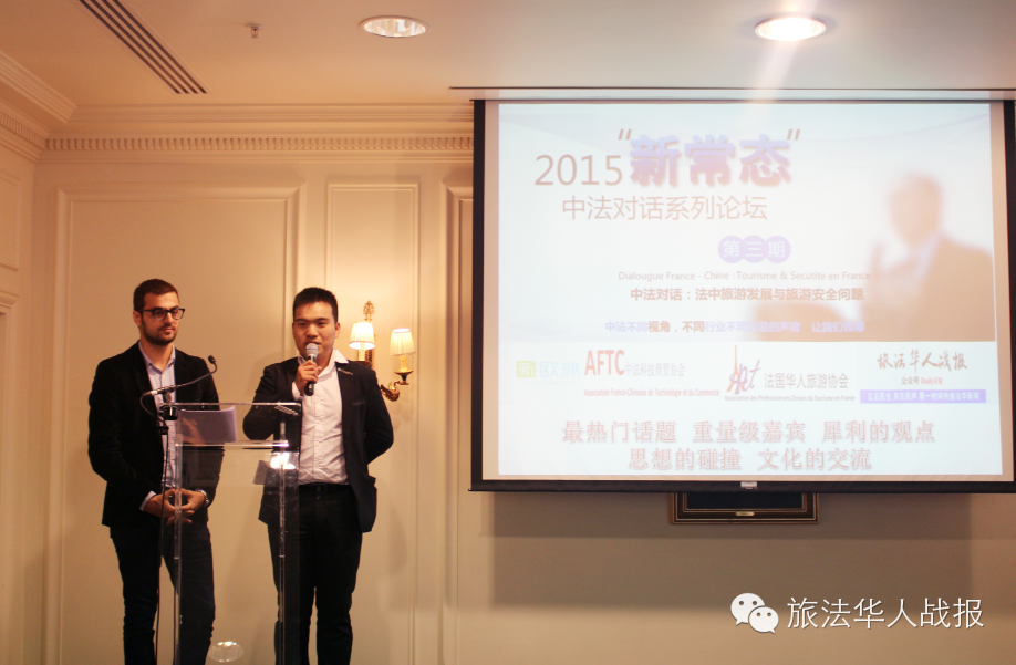 法国Sud L’Oise地区旅游局局长Jacques Bascher介绍了当地旅游特色及法国整体旅游情况,他希望风景美丽的法国能够进一步加强治安管理,吸引更多的中国游客,他也愿致力于改善安全环境,为世界各地的来法游客打造一个良好的旅游基础。 来自法律界的声音 法国华人律师协会代表刘欣女士出席论坛并发言,就法律对于盗抢嫌疑人、犯罪分子的处置以及在法报案的流程为大家做了详细解说。 在法国华人律师协会召集下,华社维权论坛近日在巴黎律师公会举办,来自中法司法界、企业界、侨界和学界的百余位嘉宾与会,法国华人社区维权公会宣告成立。公会将专注于社区重大维权主题,以纯公益、可持续的运作模式对华社维权进行介入和管理,让华社安全以及社区集体权益有一个常设机构。 刘欣女士希望不管是旅行当中还是日常生活当中,遇到法律问题,及时联系使馆和专业律师寻求帮助。法国华人律师协会一直致力于在法华人利益维护,也定期与欧洲时报和新欧洲等在法主要华媒合作,定期推出免费法律咨询和讲座,为在法华人解决法国生活中遇到的种种问题,受到旅法侨胞的欢迎。当天的论坛答问环节,亦有与会者提出,希望此类法律讲座经常性地举办下去,这非常有实际帮助意义。 新常态中法对话系列论坛 2014年以来,中国经济逐渐步入“新常态”,随着以科技领跑的企业转型不断深化,国家管理和全国企业生态系统不断完善,第三产业在互联网的影响下飞速成长,改革红利将持续释放,经济体系在转型中行稳致远,中法两国也已开启紧密持久的全面战略合作伙伴关系新时代。在此背景下,2015年新春来临之际,中法科技商贸协会与易能传媒新欧洲旗下的新闻平台旅法华人战报合作,打造“新常态中法对话系列论坛”。