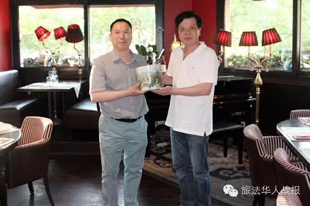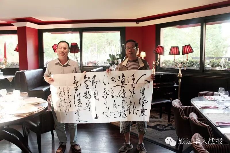 法国金华商会会长张磊对陈军先生的到来表示热烈欢迎,并对其在法国书画展的顺利举行表示祝贺。张磊向与会嘉宾介绍说,兰溪市是浙江中西部重要的工业和旅游城市,风光秀美、人杰地灵,现由金华市代管,陈军也是金华人。张磊自豪地说到,家乡人才辈出,在各个领域发展并有所建树,希望今后能与家乡更多的人才深入交流,寻求合作。