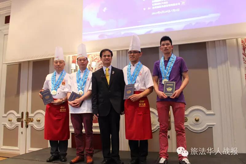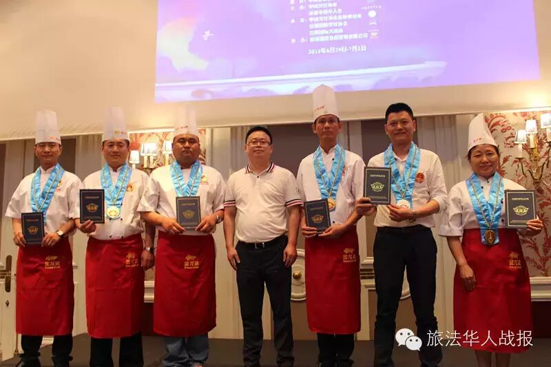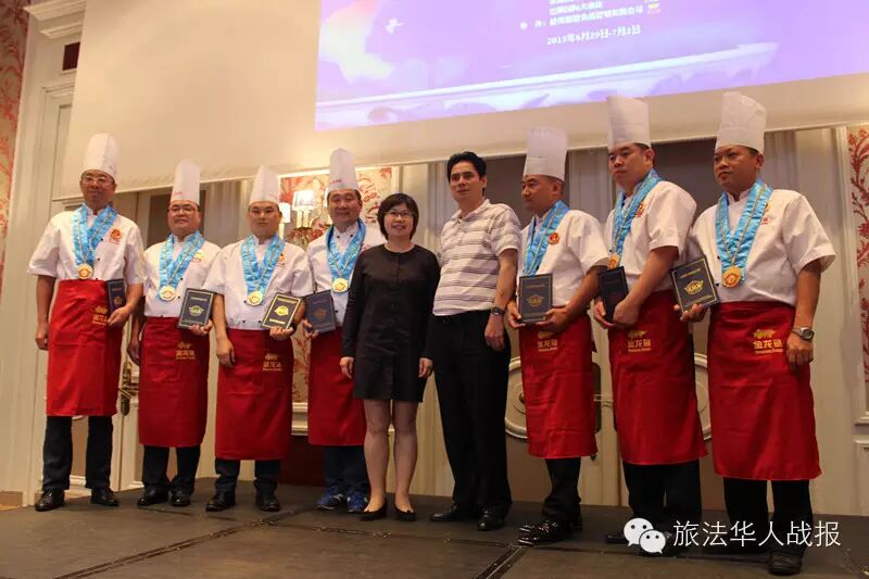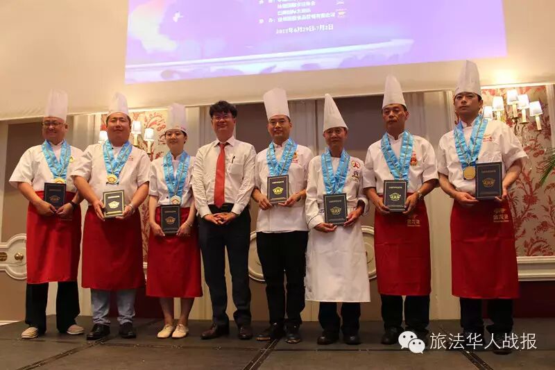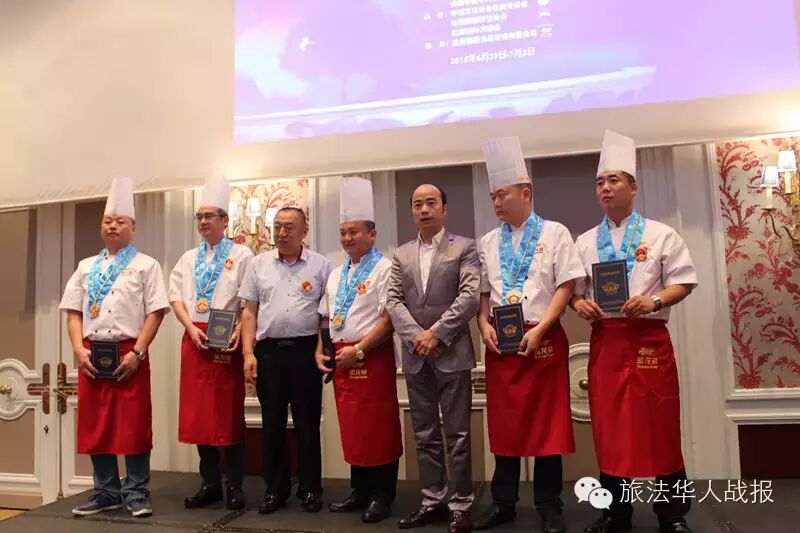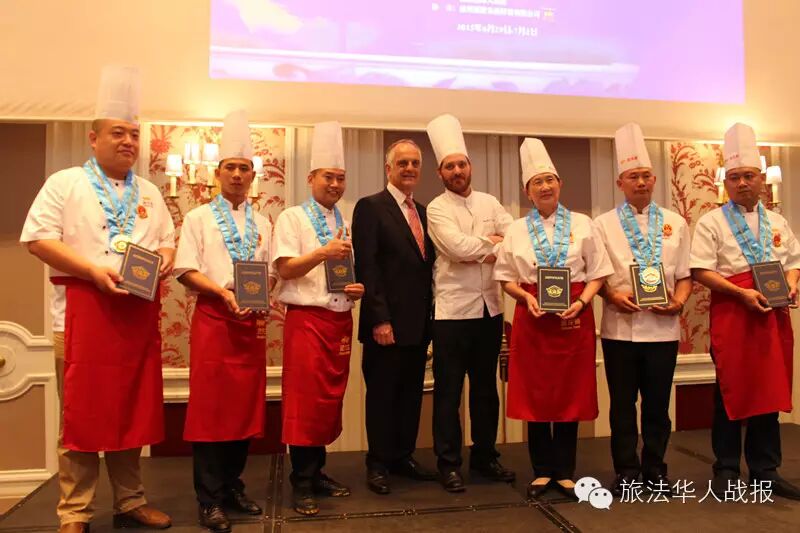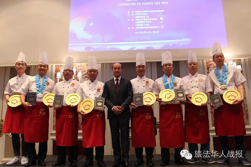 (新欧洲战报记者 毛星宇)法国时间7月1日19点,由中国烹饪协会和法国华侨华人会主办,中国烹饪协会名厨委员会、法国国际烹饪协会、巴黎国际大酒店承办的2015“巴黎国际杯”中国美食国际文化节颁奖晚会,在巴黎心脏地带、毗邻杜乐丽花园的威斯汀酒店成功举办。 法国华侨华人会执行主席、2015巴黎国际杯“中国美食国际文化节”组委会主席王加清,中国烹饪协会副会长冯恩援,中国烹饪协会特邀副会长、名厨委员会主席、本次组委会执行主席高炳义,巴黎中国文化中心副主任苏旭,法国国际烹饪协会常务副主席、本次组委会执行副主席陈建斌,益海嘉里食品营销有限公司总经理陈波,中国烹饪协会特邀副会长卢永良等,以及法国青田同乡会会长陈少奇、法国文成联谊会会长胡文华、中法服装实业商会会长胡仁爱、法国亚洲餐饮联合总会会长孙和平等法国侨界商界代表出席颁奖典礼。