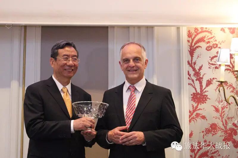 此次活动中,我们还看到中国食品品牌的身影。作为中国烹饪协会“中国美食申请进入世界非物质文化遗产名录项目”的合作伙伴,金龙鱼和徐锦记以世界级的食品品质为各国来宾展示了中国人饮食结构中不可或缺的基本食材,让各国友人更加了解和喜爱中国饮食文化。最后益海嘉里食品营销有限公司总经理陈波还和巴黎西餐学校LeNôtre法方代表互赠礼物,相约加强友好合作关系。 留影