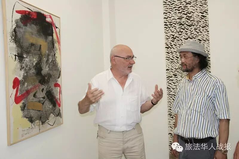 (新欧洲战报记者 吴忱)法国时间7月2日晚,中国画家周建华受法国Djeziri-Bonn画廊之邀,携32幅当代水墨画作品在巴黎玛黑区举办个人画展。巴黎美院教授Michel Duport、巴黎百年画廊主人Emmanuel Jaeger、旅法艺术家王克平等中法艺术界、收藏界人士、美学研究者参加了当晚的画展揭幕式。 ![]() 周建华在开幕致辞中首先感谢各位嘉宾的到来。周建华说,十分高兴来到世界艺术之都巴黎办展,旅法中国艺术家吴冠中、赵无极和朱德群都是他所钦佩的前辈,此行是实现了自己多年的愿望。中国艺术家的创作根植于中国传统文化的根基,又兼具文化的包容性,比如他的作品就多是用水墨表现抽象的概念。 周建华介绍,本次展出的画作是借助传统的毛笔、水墨、纸,融中西审美于一体,表达强烈的自我意识和浓郁的浪漫主义情致。周建华认为,东西方文化和艺术有近似之处,可以融会贯通。他心中一直有一个“大文化”概念,即文化没有国界之分。如果文化真的需要具体的区域划分,无可避免会有狭隘之处。从世界范围来看,所有的艺术均是在以不同的方式来表现“真善美”。
