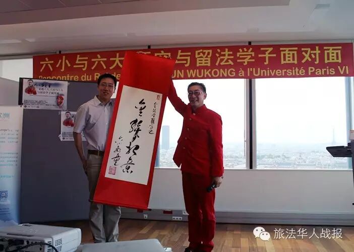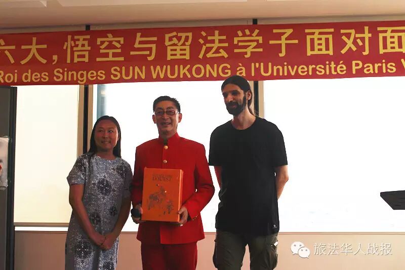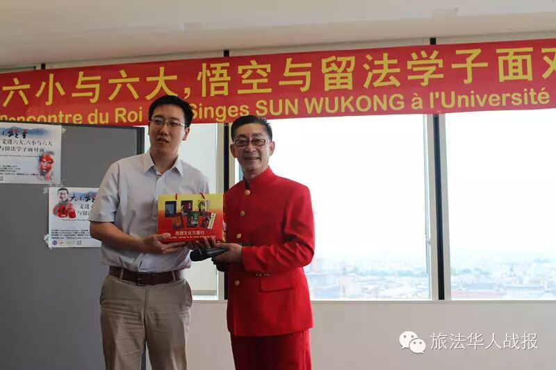 (新欧洲战报记者 毛星宇)芳菲歇去何须恨,夏木阳阴正可人。巴黎的气温逐渐升腾,夏日的记忆也在大家脑海中翻滚。还记得小时候在每个暑假陪伴我们的《西游记》么?为了让大家能再次回味童年的美好并更深入更近距离了解这部古典巨著,7月4日,全法学联与巴黎六大学联力邀《西游记》孙悟空的扮演者-----中国国宝级艺术大师“六小龄童”章金莱走进六大与大家共享一场中国文化的饕餮盛宴。 ![]() 当日下午,由全法学联主办、巴黎六大学联承办、新欧洲协办的“六小与六大——悟空与留法学子面对面”活动在巴黎第六大学成功举办。本名章金莱的六小龄童与现场留法学子、华人同胞及外国友人面对面,进行了一次别开生面、不同凡响的西游文化之旅。中国驻法使馆教育处一等秘书赵静梅、全法学联主席王珂、法国国家药学科学院院士张勇民等出席活动。