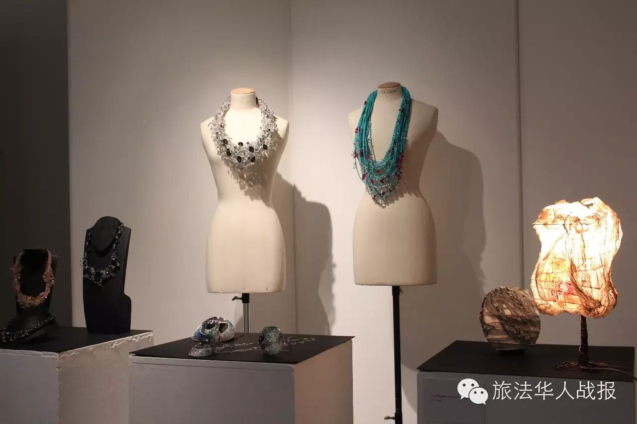 珠宝配饰工艺 “ALIX意味着迈向时装界职业生涯的有力跳板。”一位来自比利时学服装的姑娘对战报记者说:“我在巴黎学了三年服装,但是感觉有很多实践操作课还不会,我有一个朋友在这学习后说这里课程非常不错,我想在工作前再学习一年实践操作课,这对我未来的职业生涯非常有帮助。” 精良之作 整个下午,展厅内人来人往,魏镇忙于照应,有些应接不暇。一位韩国做织物工艺的姑娘闻名而来,对现场的定制成品和珠宝配饰都赞叹不已。她说:“朋友是服装设计师,因为早有耳闻《Zhen & Mossi》这个品牌,才慕名而来。这些皮革的拼接实在太棒了!”