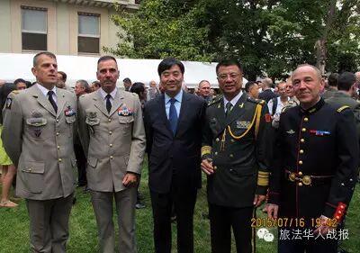 (新欧洲战报讯)7月16日晚,中国驻法使馆国防兼海、空军武官周琪少将在使馆举办招待会,热烈庆祝中国人民解放军建军88周年。法国防部国际关系和战略事务总局副局长杜歇海军中将、空军副参谋长卡拉少将、共和国卫队司令斯特埃毕格少将、前总统特别参谋长盖诺上将等来自法军方、政府部门、驻法武官团、法社会各界人士和部分华人华侨、中资机构及留学生代表近300人出席招待会。翟隽大使夫妇和使馆主要外交官出席庆祝活动。 翟隽、周琪同法军高级军官合影 周琪表示,中法两军关系是两国全面战略伙伴关系的重要组成部分,近年来,两军在高层交往、战略对话、专业交流和人员培训等领域均取得长足发展,特别是今年上半年,两国海军编队实现了互访,并成功举行了海上联合编队演练,进一步促进了两军的互信与合作。 他还介绍说,2015年5月中国政府发表了《中国的军事战略》白皮书,明确提出“参加地区和国际安全合作,维护地区和世界和平”是中国军队担负的战略任务之一。目前,2700多名中国官兵在联合国9个任务区参加维和行动,包括在马里、南苏丹等地。 周琪最后强调,今年是中国人民抗日战争暨世界反法西斯战争胜利70周年,为铭记历史,缅怀先烈,珍视和平,开创未来,中国将于9月3日在北京举行阅兵和纪念活动。