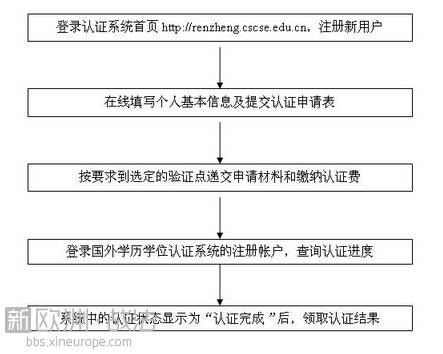 一张二寸(或小二寸)蓝色背景证件照片; 需认证的国外源语言(颁发证书院校国家的官方语言)学位证书或高等教育文凭正本原件和复印件; 需认证学位证书或高等教育文凭所学课程完整的正式成绩单原件和复印件;如以研究方式学习获得的学位证书,需提供学校职能部门(如学院、学籍注册部门或学生管理部门)开具的官方研究证明信原件和复印件,研究证明信内容应说明学习起止日期(精确到月份)、专业名称、研究方向、所授予学位等信息; 需认证的国外学位证书(高等教育文凭)和成绩单(研究证明信)的中文翻译件原件(须经正规翻译机构翻译,个人翻译无效。如到北京教育部留学服务中心服务大厅递交认证申请材料,可前往中心6层服务大厅内的翻译公司办理翻译,如前往北京CBD认证验证办公室递交认证申请材料,可直接选择同处该办公大厅的翻译公司进行认证翻译,翻译件将在翻译完成后直接转入认证程序,无需现场等待翻译结果; 申请者留学期间所有护照(含护照首页-个人信息页、末页-本人签字页、以及所有留学期间的所有签证记录和出入境记录)原件和复印件。如果申请者留学期间护照已超出有效期限,还需提供在有效期限内的护照原件或有效身份证件原件和复印件;