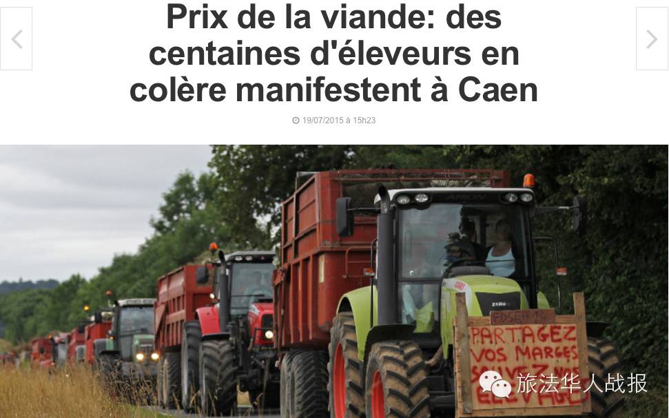 7月19日周日,法国北部卡昂一带的丰特奈莱佩斯内(Fontenay le Pesnel),大批农民上街抗议并封堵卡昂市郊环路,他们将拖拉机开到街头,倾倒轮胎、干草和垃圾等,抗议牛肉、猪肉和奶品的收购价过低,而超市市场价过高。“再这样下去,我们就没法活了!”他们对奥朗德总统喊话,并要求与农业部部长对话。 奥朗德总统的前女友,名记者瓦莱丽·特里耶维勒女士不忘“落井下石”,去年“被分手”后,瓦莱丽就曾出书《感谢这一刻》,曝奥朗德是“伪君子”,“看不起穷人”。此次肉价风波一起,瓦莱丽第一时间在自己的twitter上发文讥讽:“肉价?我才不在乎呢,反正我是无‘齿’之徒。” 而相关部门对农产品的收购价格一旦提高,势必造成消费渠道的价格上涨。事实上,近一年来,法国超市的不少食品都在涨价,甚至涨幅相当大。比如SIMPLY超市一款小包装盐渍杏仁,去年的价格是3.2欧左右,今年悄然涨至3.75欧。MONOPRIX的西梅干,500克无核装去年的价格是3.5欧,现在的价格上涨1欧有余。类似例子相当多,民生价格是在这样不知不觉拉升。