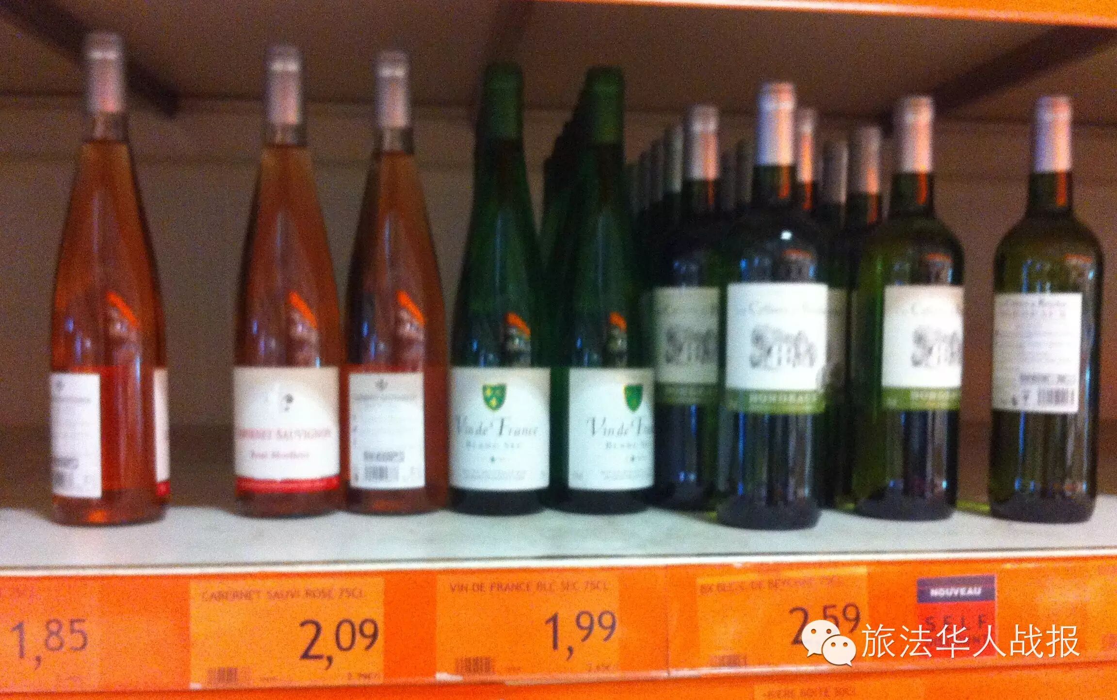 据同去购物的同事讲,这里的黄油桃、各类苹果都比水果超市便宜很多。 酒水 法国人的餐桌上离不开酒,葡萄酒、水果酒、啤酒都备受欢迎,聚会或受邀去别人家里吃饭时,带上一瓶好喝的酒,保准没差。超市里,便宜到两三欧的酒也有很大的消费群。