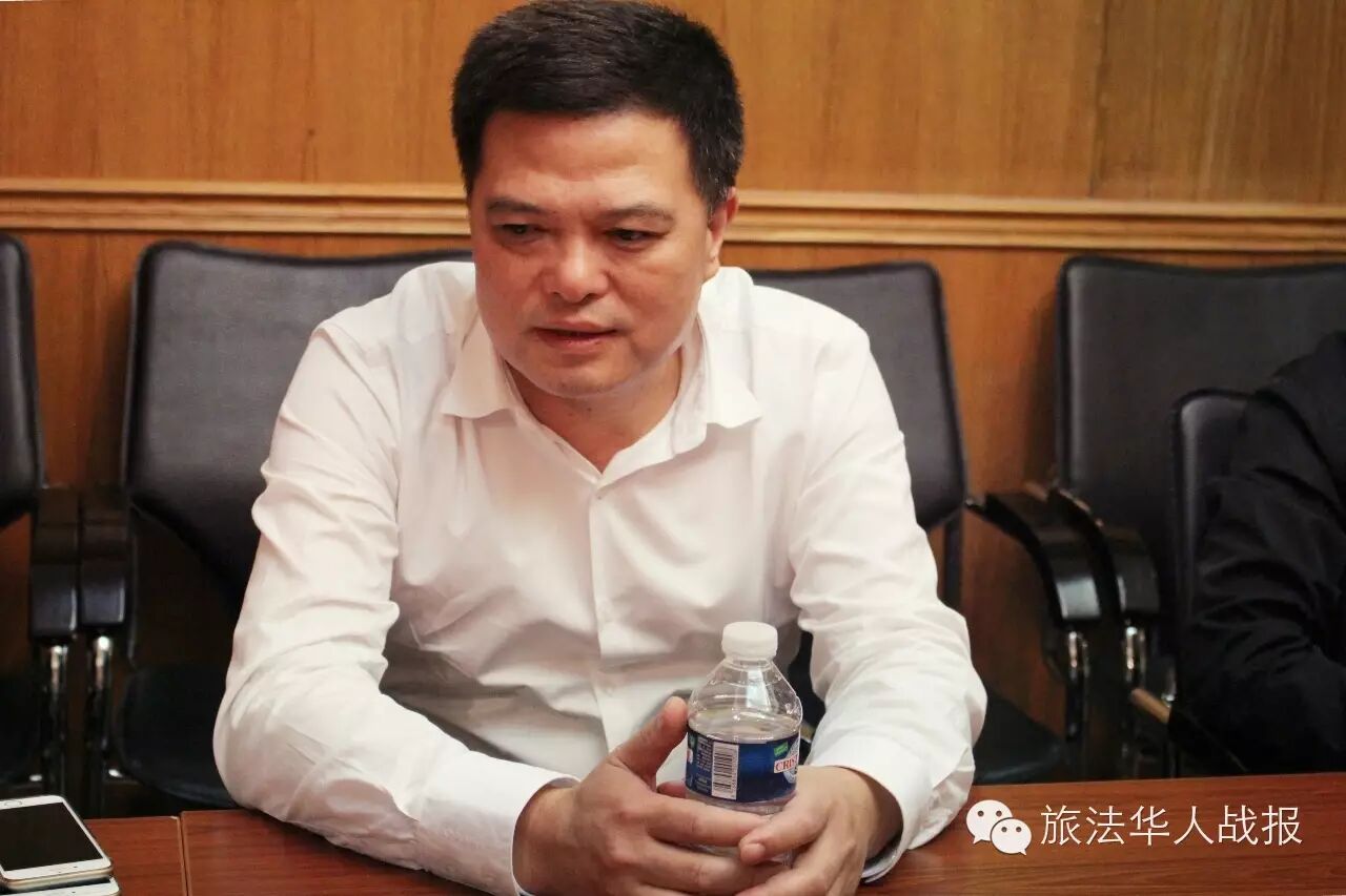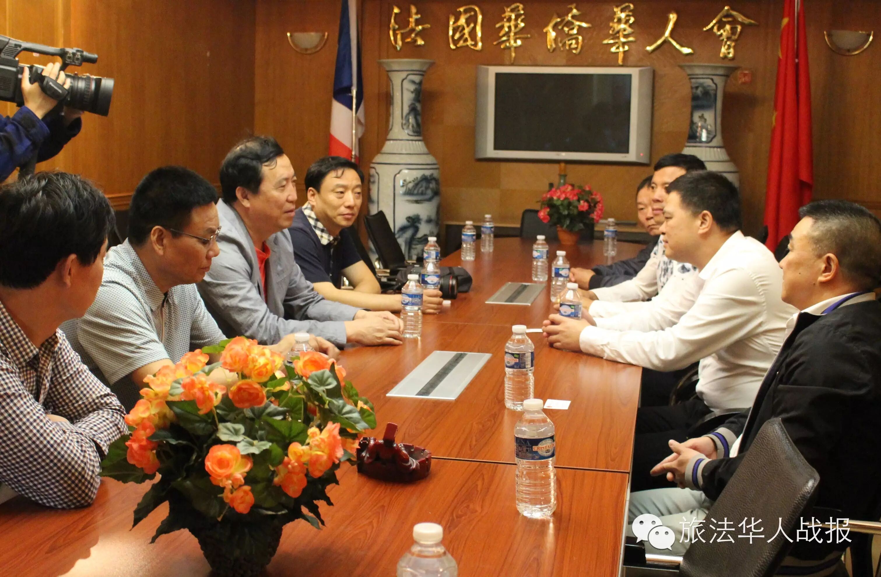(新欧洲战报记者 陈星院)7月26日下午,法国华侨华人会在会馆接待河南省濮阳市政府考察团,法国华侨华人会第一副主席任俐敏,副主席、华助中心主任郑金标等与濮阳市副市长郑实军、副秘书长吕宝岭,市林业局局长张百昂,范县丽景生态农民专业合作社经理李永立等进行亲切会谈。