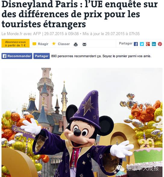 据中国日报网援引英国《卫报》报道,欧盟执委会近来接获数件有关巴黎迪士尼乐园的申诉,并针对不公平对待顾客展开了大范围取缔行动。 欧盟执委会女发言人也表示,“我们正在细查多件申诉,其中数件涉及举报巴黎迪士尼。欧盟执委会与欧洲消费者中心常接获消费者申诉,因国籍或居住地不同,遭到不合理的差别待遇,而这是为欧盟法律所不容。”她还说,“最常看到的是,在其他成员国购买服务或商品的消费者,不能以最好的价格买到。” 据《金融时报》报道,这一欧洲最大的主题乐园贩卖优惠套票时,收法国人1346欧元(约合人民币9235元),却向英国人索价1870欧元(约合人民币12830元),德国人要支付的金额更令人咋舌——要2447欧元(约合人民币16800元)。 欧盟消息人士称,法国有责任确保巴黎迪士尼乐园遵守欧盟公平贸易法。并表示,预计布鲁塞尔会针对此案与巴黎联系。 (编辑:鲁佳) |
