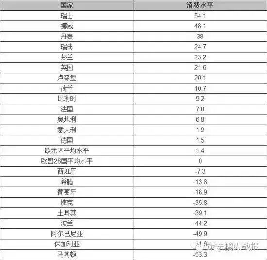 据欧盟统计局的数据,欧洲的瑞士、丹麦等国消费水平较高,德国以及葡萄牙、西班牙等南欧国家物价水平颇为经济实惠,法国居于中游。总体来说,受经济危机波及的国家物价相对较低,东欧国家消费最为低廉。 来源 | 房天下希腊房产网 瑞士、丹麦:物价高 [attach]2317470[/attach] 瑞士和丹麦的高物价尽人皆知,不过这也是建立在高收入的基础上。这两个国家没有使用欧元,而他们本国的货币在欧洲央行宽松的货币政策下,承受着升值的压力。为了恰当显示出欧洲各国的物价水平,统计局将购买力与可对比的物价水平结合起来考虑。这样就能将欧元区和非欧元区的国家进行比较了。 德国、葡萄牙、西班牙:实惠