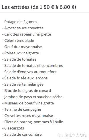 刚坐下,服务员便雷厉风行地丢来了菜单,然后去招待其他客人了。我们不自觉也被她的速度带快,点菜速度也快了起来。菜单上各式法餐必点的菜品还真不少,前菜里有蜗牛、鹅肝、鸡蛋、火腿、牛油果等各式沙拉都不错,好想每个都尝一尝。最终我们点了小块牛脸肉洋葱沙拉和鸡蛋沙拉,主菜点了羊排薯条和油封鸭腿。